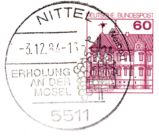 Handwerbestempel aus Nittel vom 3.12.1984 mit einer Abbildung von Weintrauben.