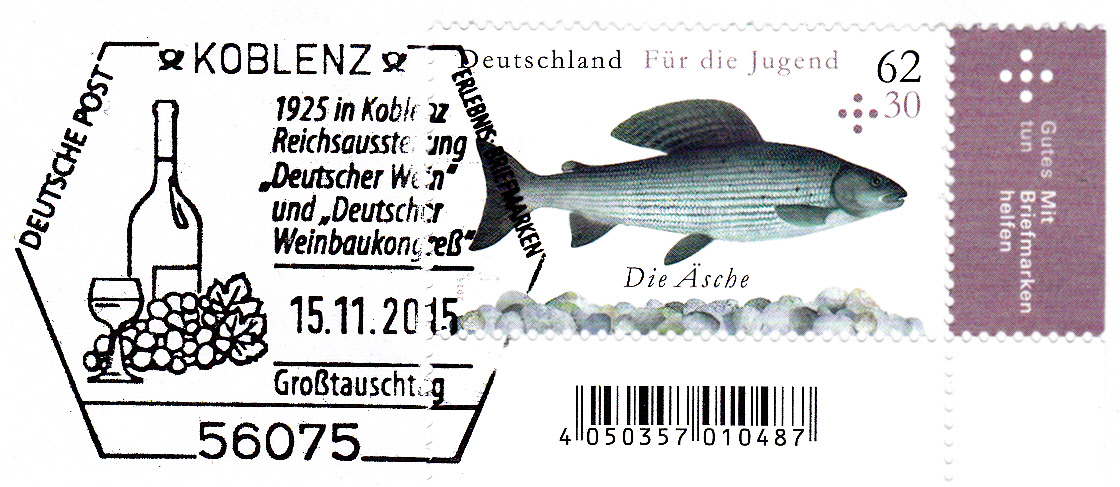Dieser Sonderstempel zu einem Großtauschtag vom 15.11.2015 erinnert an diese Ausstellung und die Entstehung des Weindorfes vor 90 Jahren. Im Stempelbild eine Weinflasche, ein Weinglas und Weintrauben.