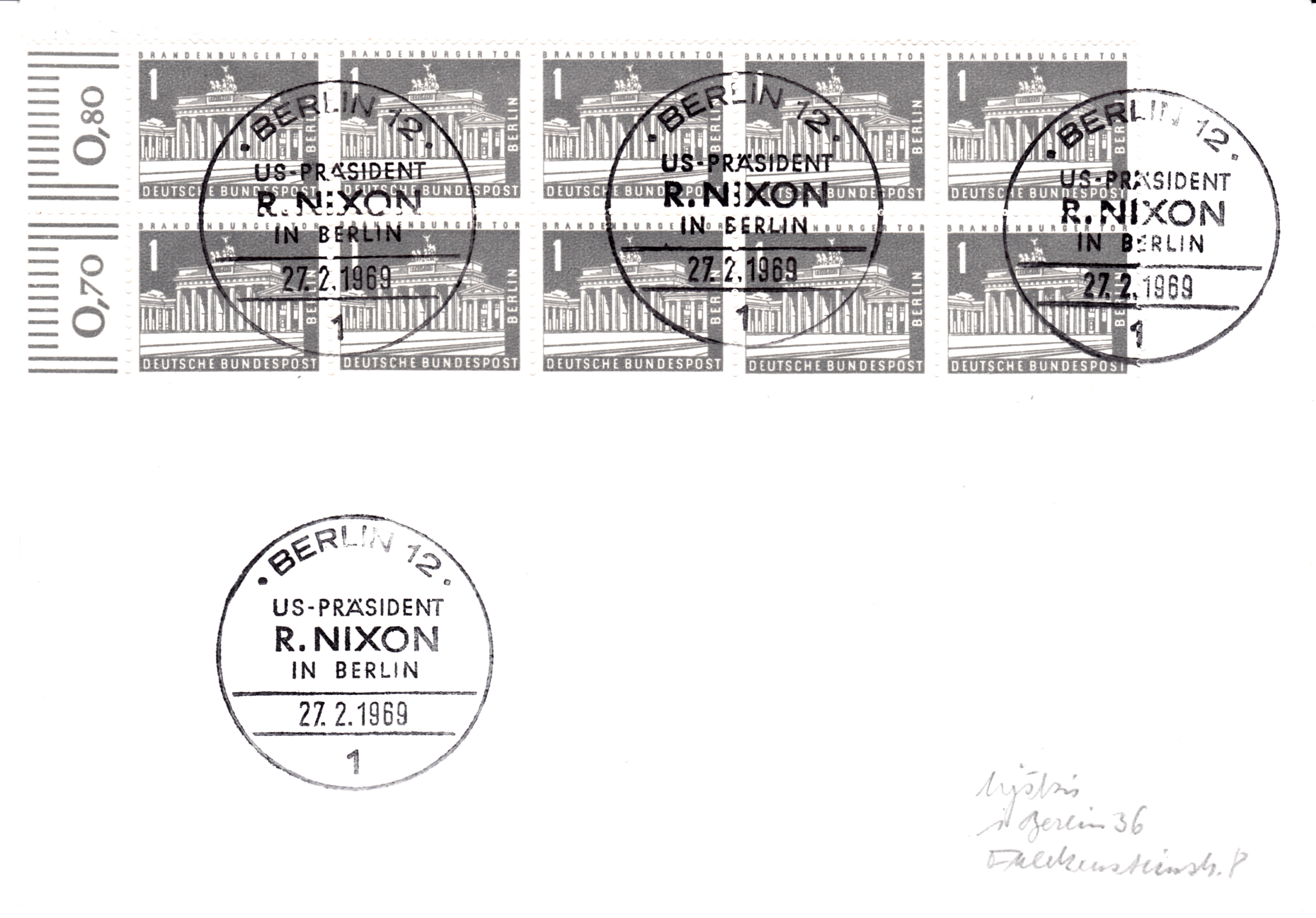 Sonderstempel aus Berlin vom 27.2.1969 zum Besuch von Richard M. Nixon in Berlin.