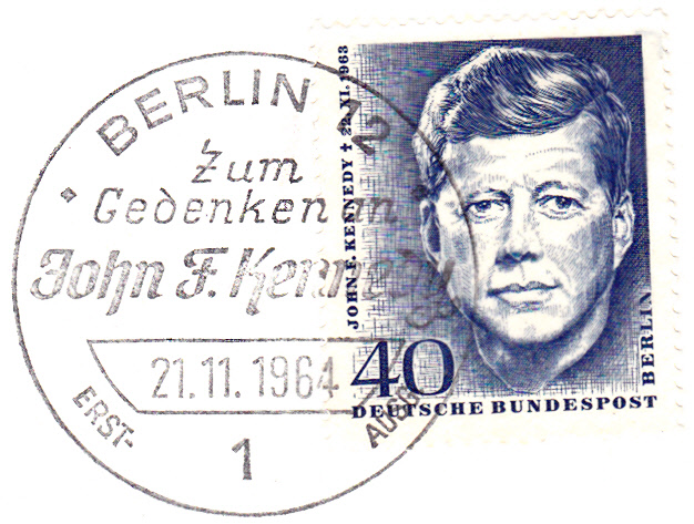 Am 29.5.1964 erschien eine Sondermarke zu 5 Cent mit einem Porträt von Kennedy und einer ewigen Flamme im Bild.