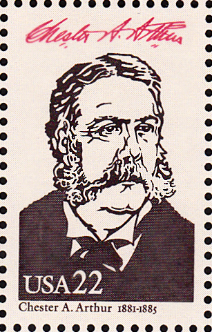 Am 22.11.1938 erschien in der Freimarkenserie "Präsidenten der USA" ein Wert zu 21 Cent mit einem Porträt von Chester A. Arthur (MiNr 433 A).