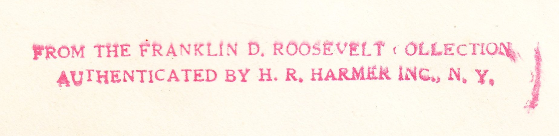 Die Belege aus seiner Sammlung wurden zu dieser Auktion vom Auktionshaus Henry R. Harmer mit einem solchen zweizeiligen Stempelabdruck versehen, der die Echtheit dokumentierte: