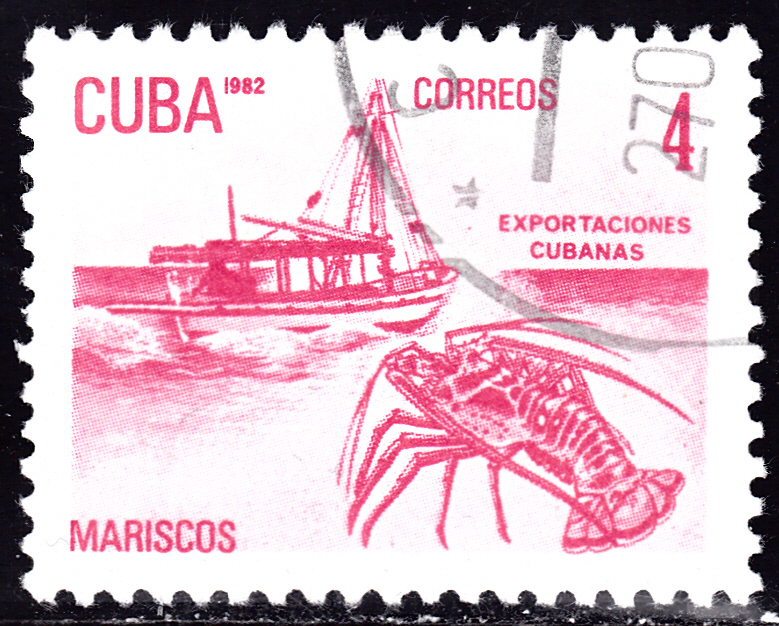 In der Serie "Exportgüter" erschien in Kuba diese Marke (MiNr 2634) mit der Abbildung einer Kariben-Languste.