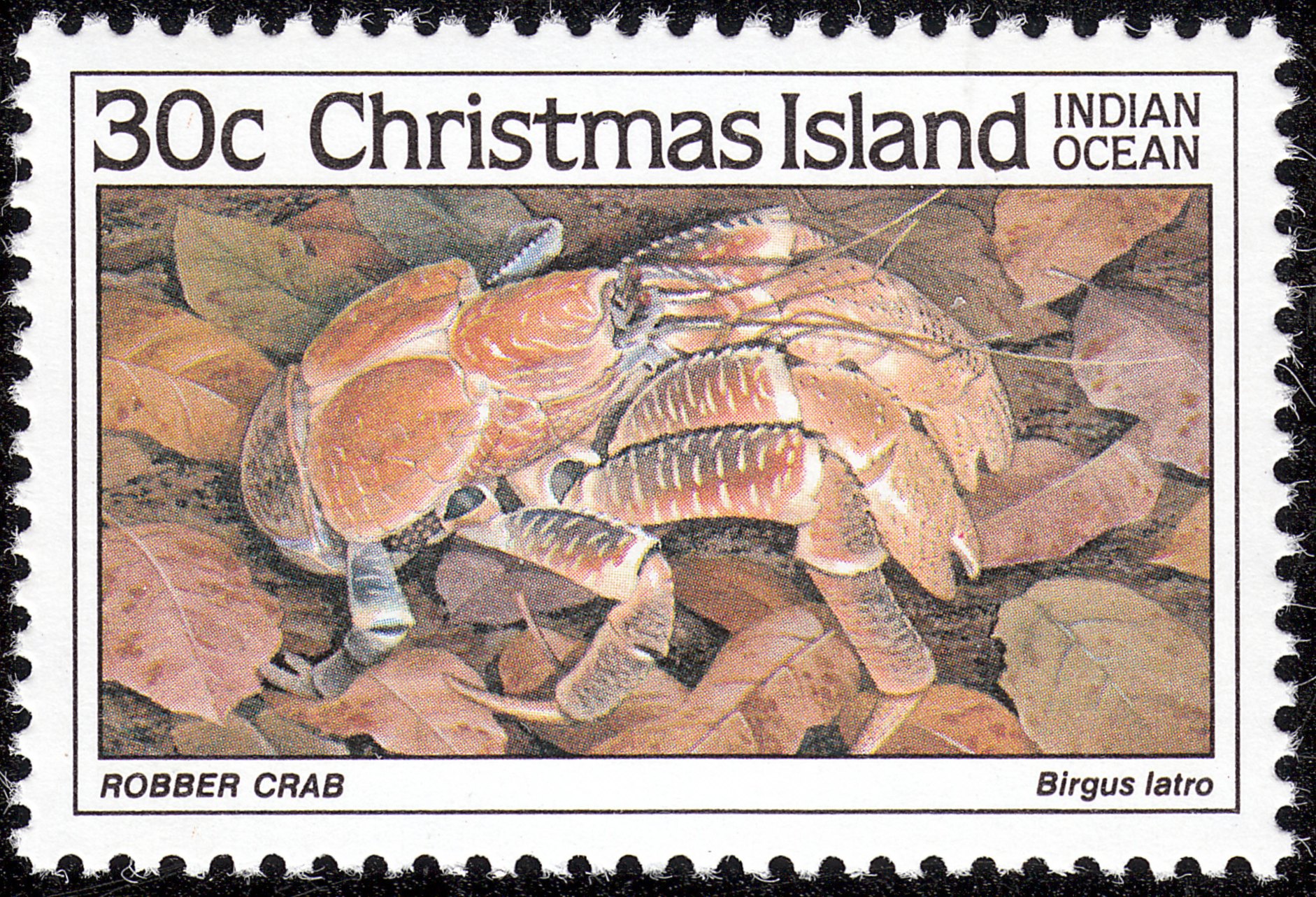 Hier ein Postwertzeichen von der Weihnachtsinsel = Christmas Island mit der Darstellung eines Birgus latro = "robber crab":