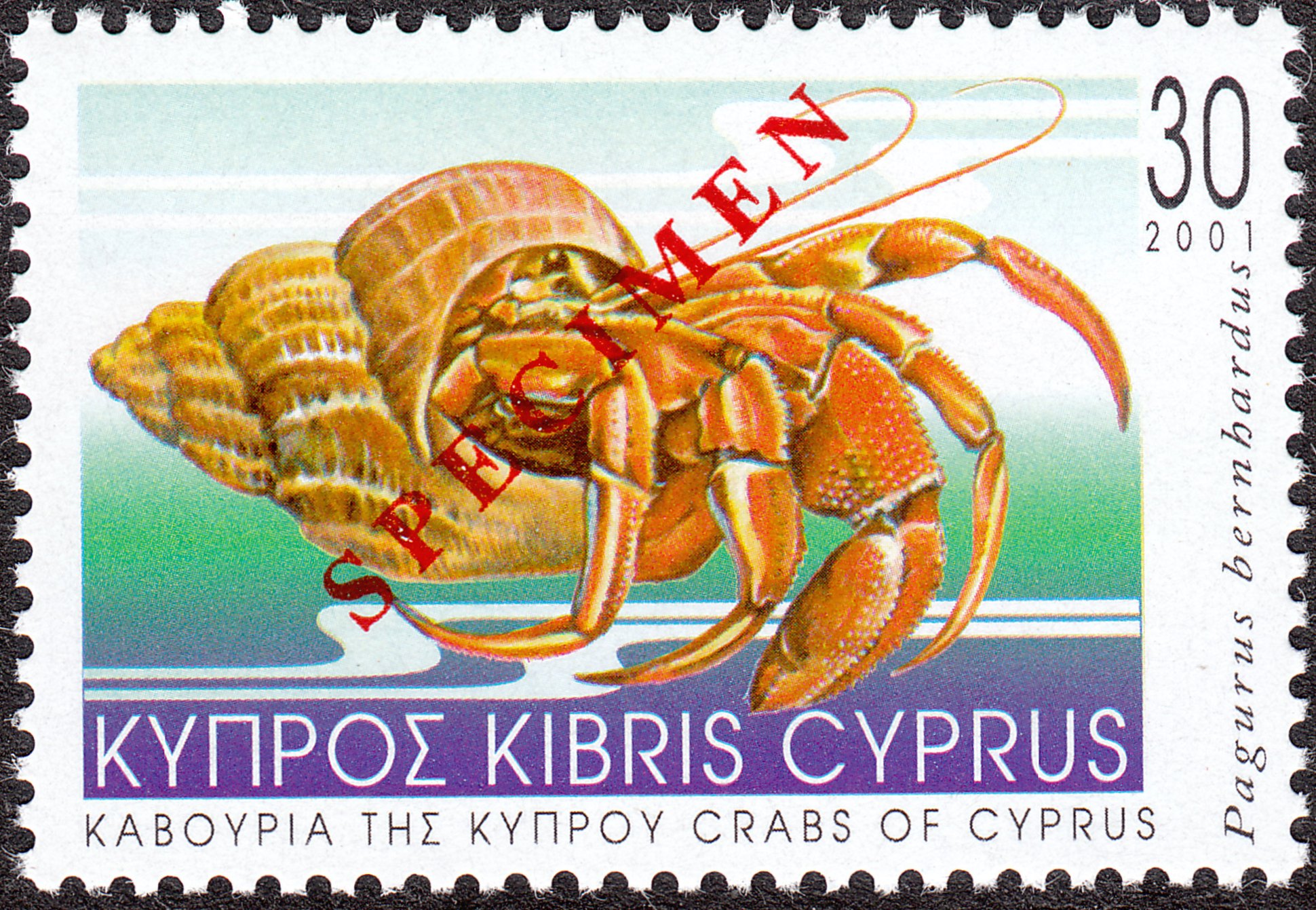 Der vierte im Bunde ist in diesem Satz aus Zypern der Gemeine Einsiedlerkrebs = Pagurus bernhardus: