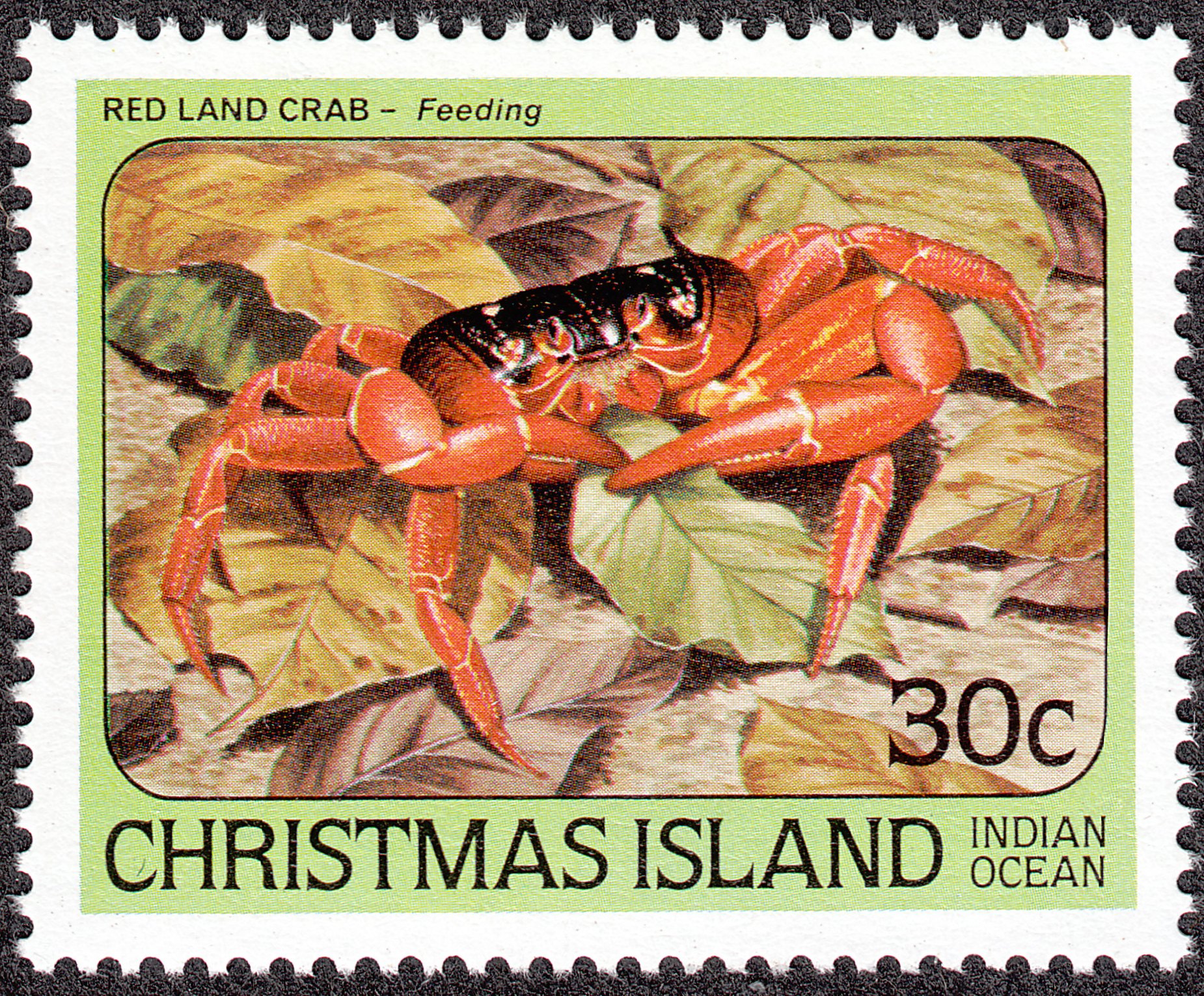 Der Wert zu 30 Cents zeigt eine Weihnachtsinsel-Krabbe bei der Nahrungsaufnahme: