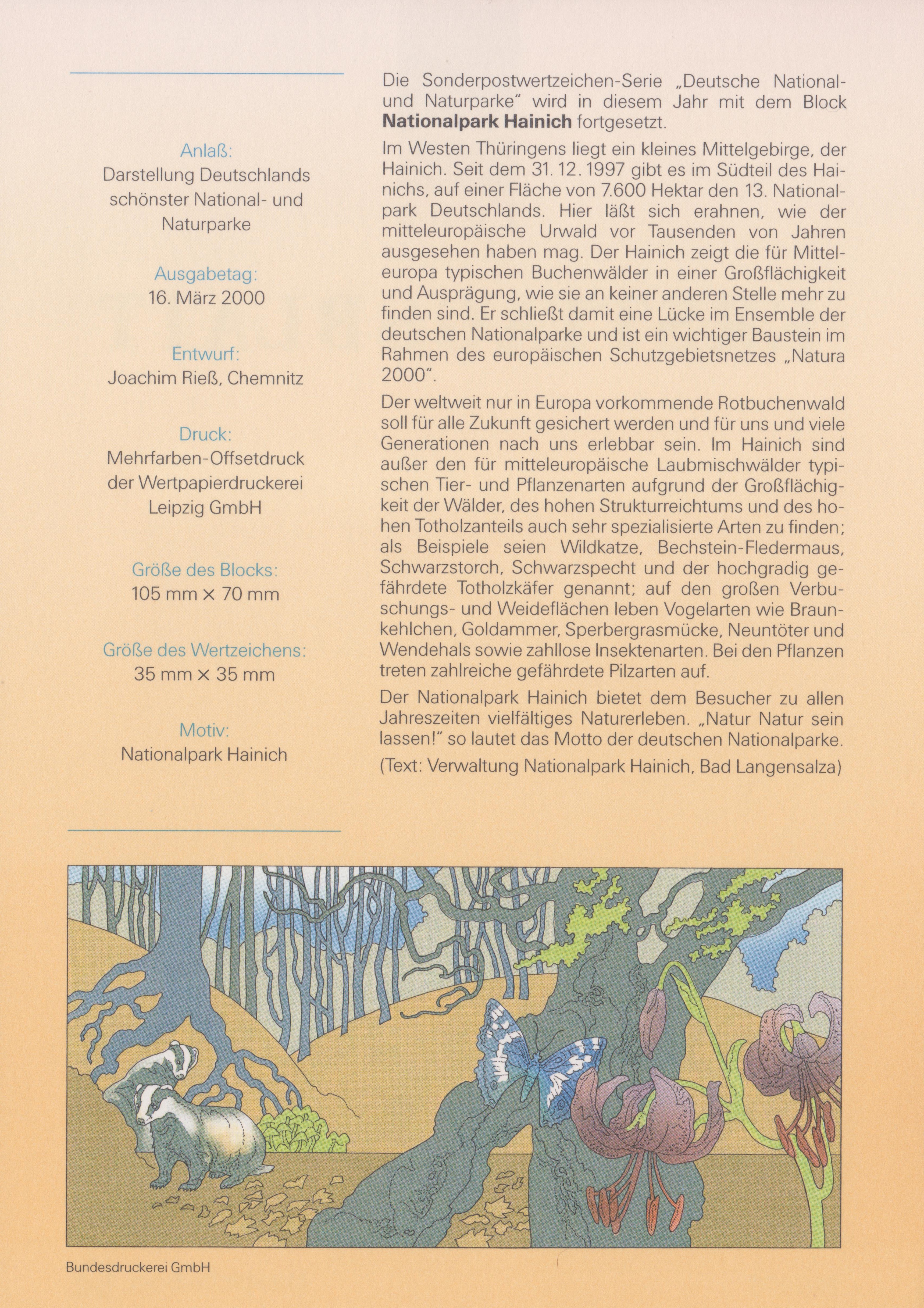 Bund Block 52 zeigt den Nationalpark Hainich, hier auf ETB 16/2000: