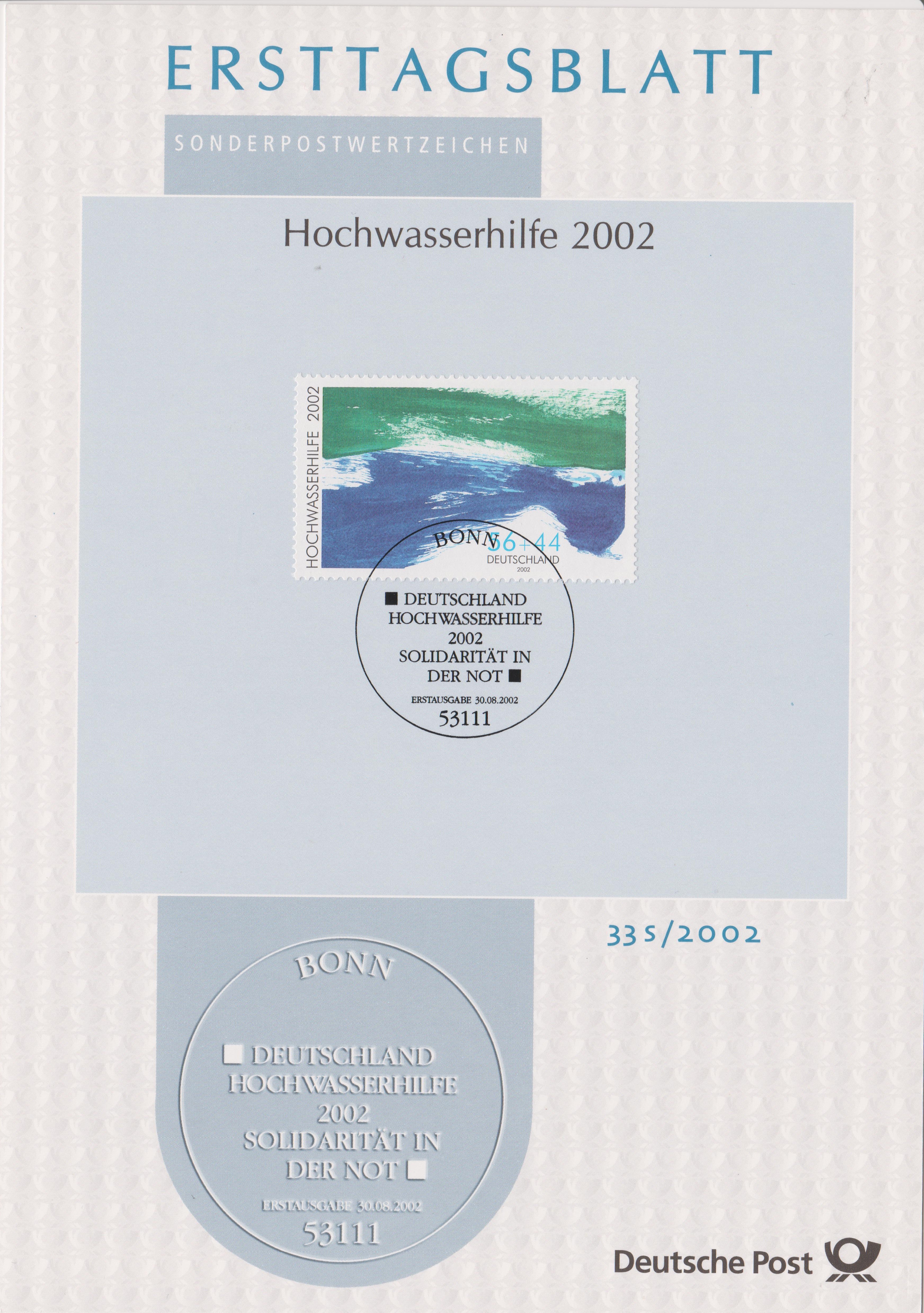 Am 30.08.2002 wurde dieses ETB 33 s/2002 zum Thema "Hochwasserhilfe" sufgelegt: