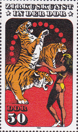 Diese Marke der gleichen Ausgabe (MiNr 2986) zeigt ein Tigerdressur.