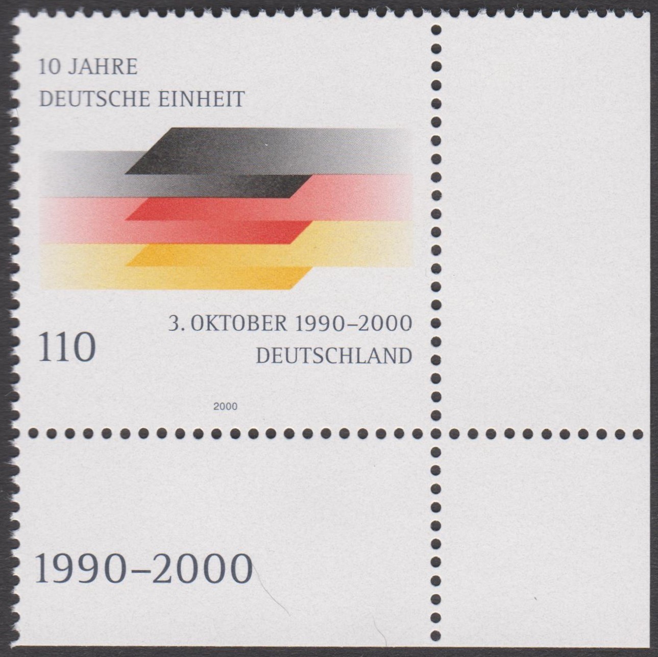 Bund MiNr. 2142, linke obere Ecke des Zehnerbogens (= Feld 1) sowie rechte untere Ecke des Zehnerbogens (= Feld 10) postfrisch: