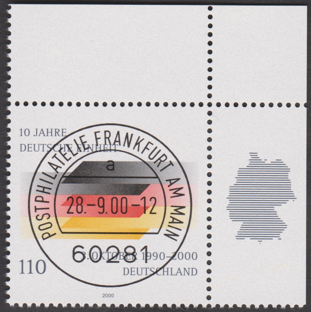 Bund MiNr. 2142, rechte obere Ecke des Zehnerbogens (= Feld 5) mit EST POSTPHILATELIE FRANKFURT AM MAIN:
