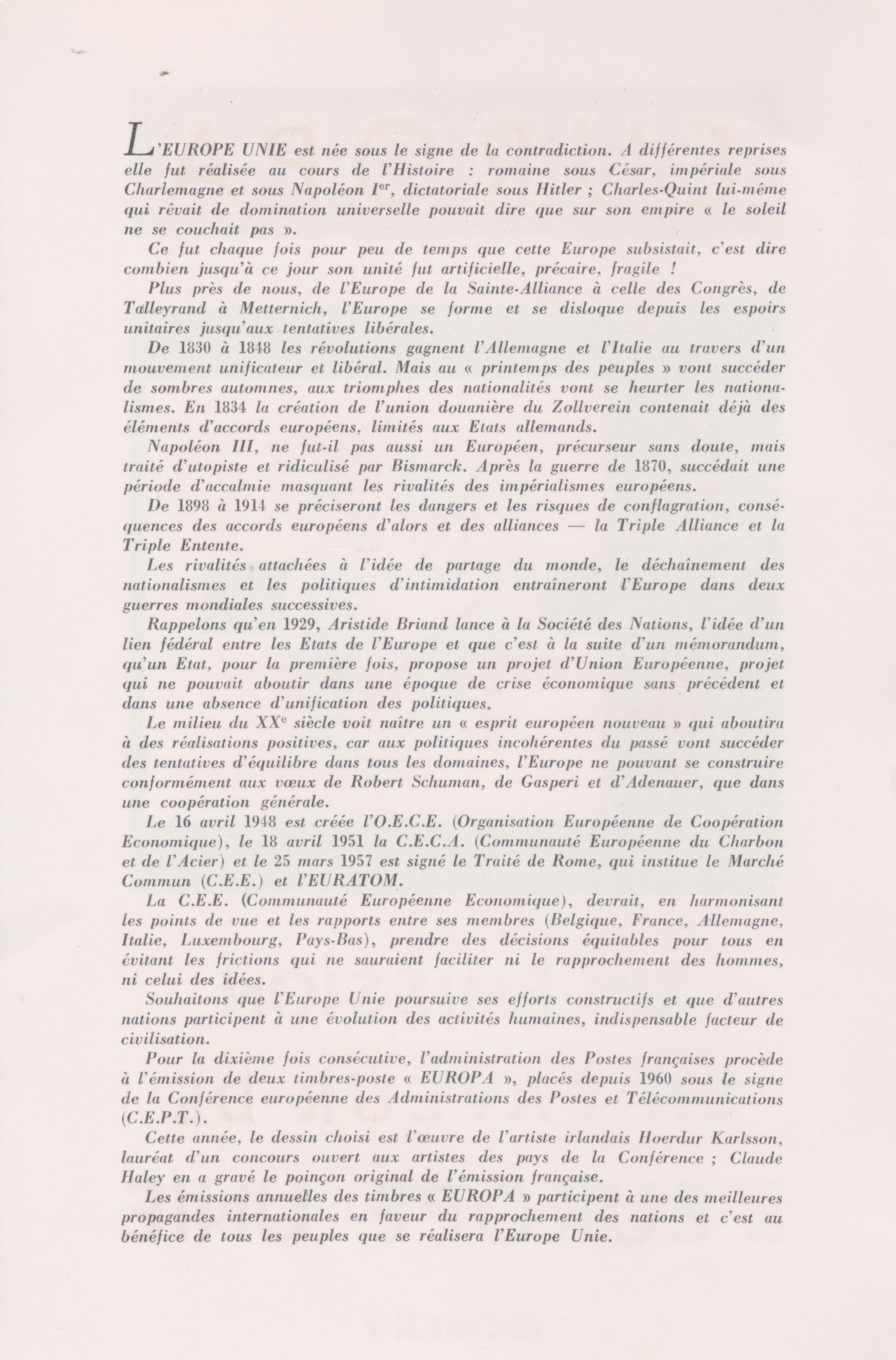 Dieses Faltblatt aus Frankreich zeigt die am 25.09.1965 ausgegebenen Europamarken mit dem Ersttagasstempel sowie mit drei verschiedenen Sonderstempeln entwertet: