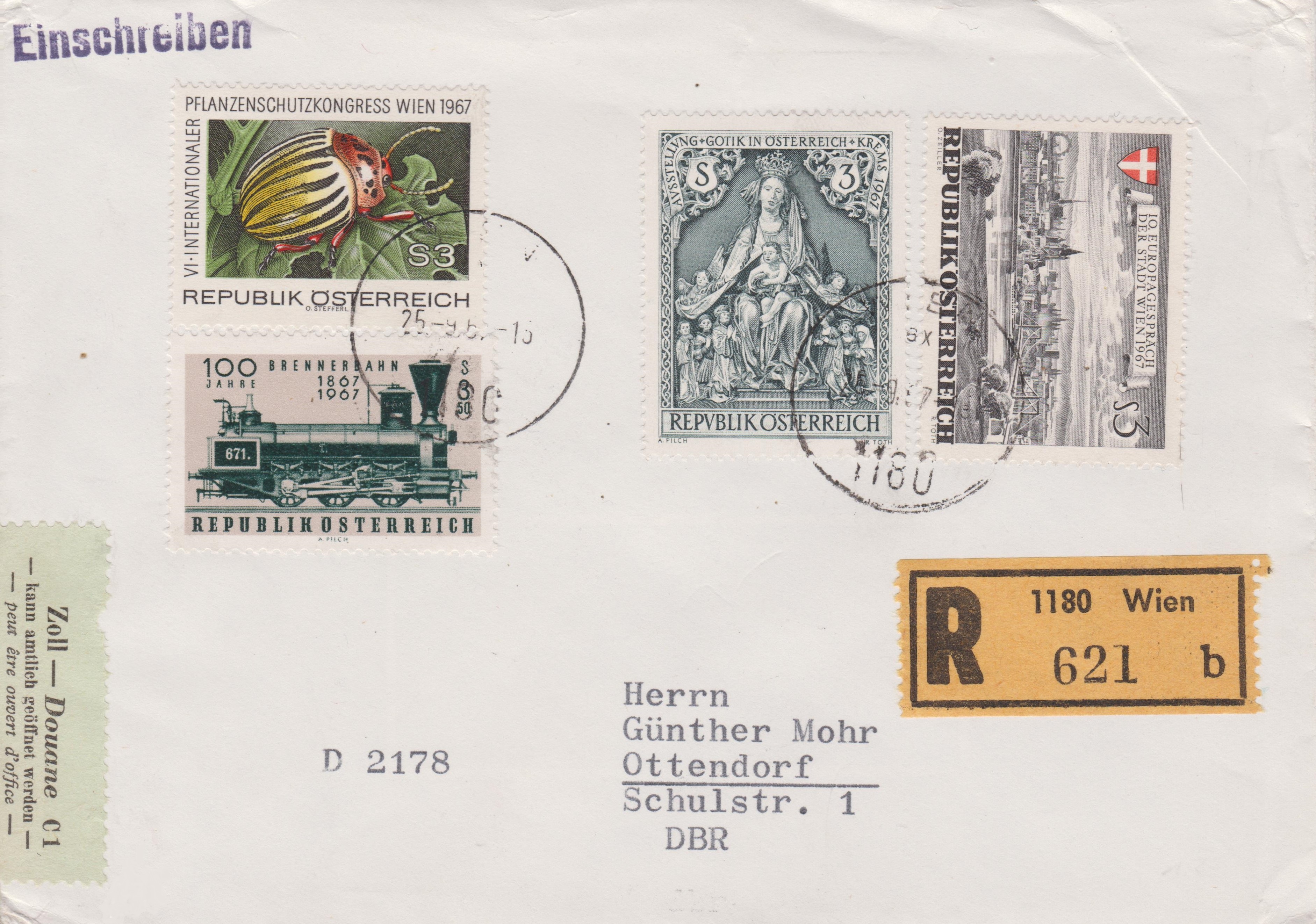 Brief per Einschreiben, adressiert nach "D 2178 Ottendorf", aufgegeben am 25.09.1967 in 1180 Wien: