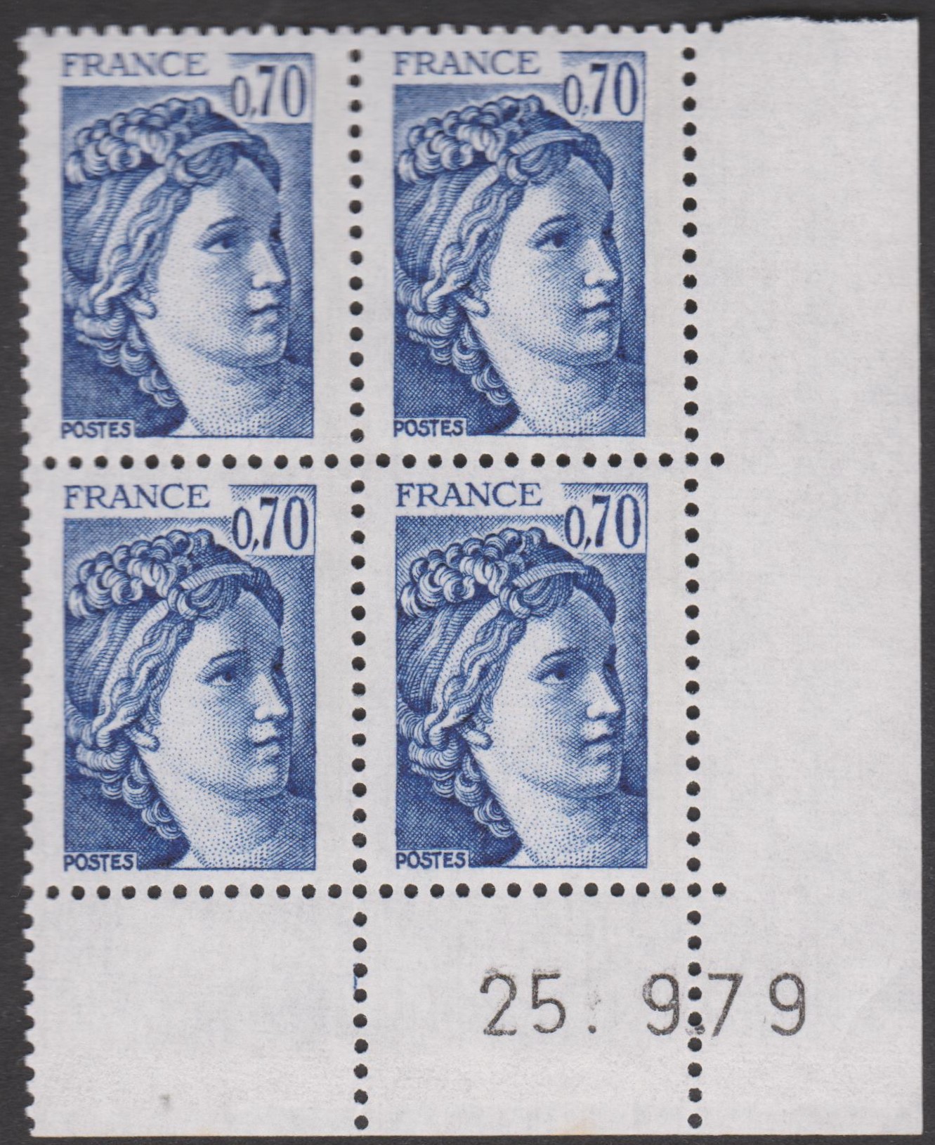 Diese rechte untere Bogenecke aus Frankreich zeigt rechts unten das Druckdatum "25. 9.79", weshalb ich sie sehr gerne in diese Sammlung aufgenommen habe: