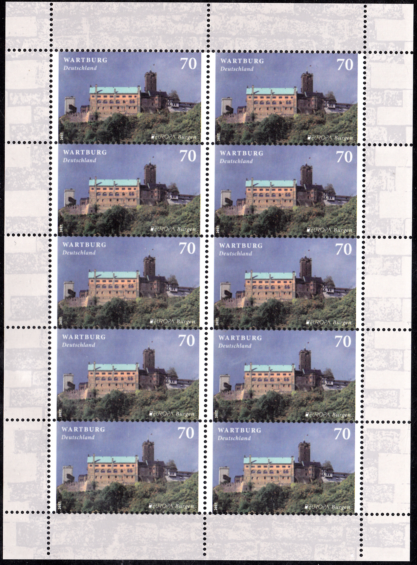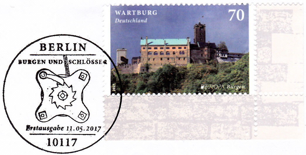 Die Europamarke 2017 der Deutschen Post AG (MiNr 3310) zeigt eine Ansicht der Wartburg.