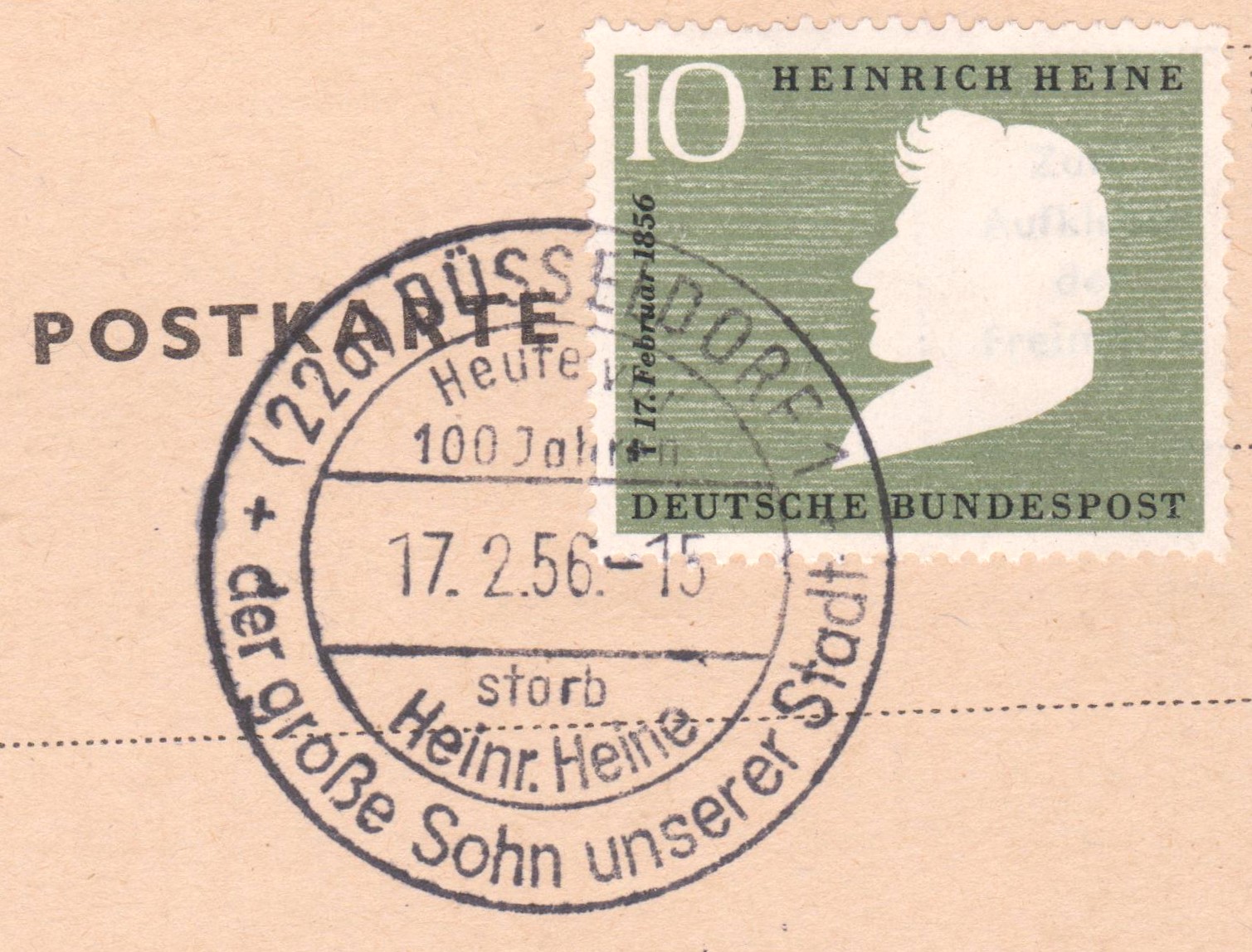 Dieses Postwertzeichen zeigt eine Kopfsilhouette von Heinrich Heine: