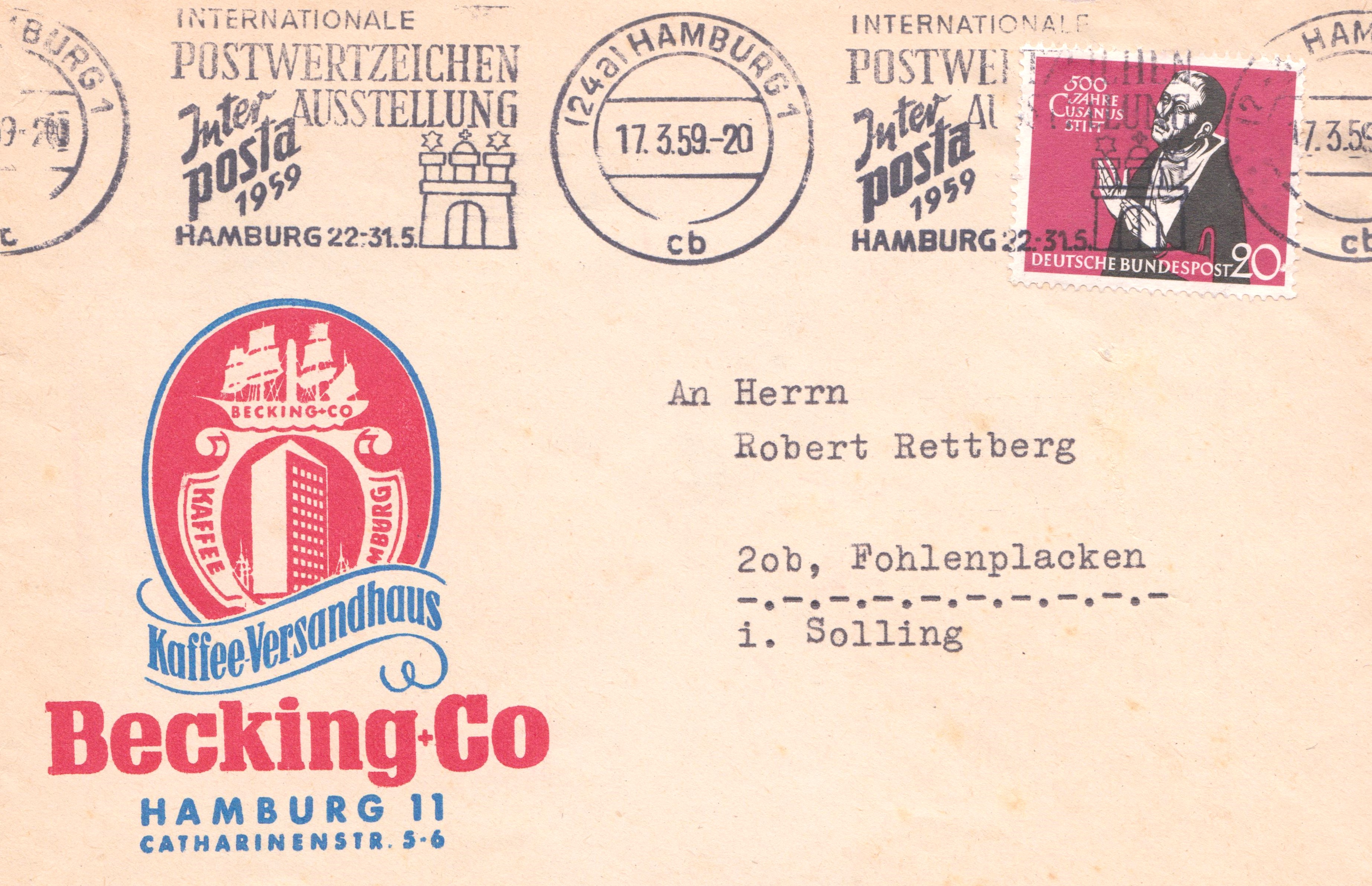 Die Interposta war eine internationale Postwertzeichenausstellung, die vom 22./31.05.1959 in Hamburg stattfand.