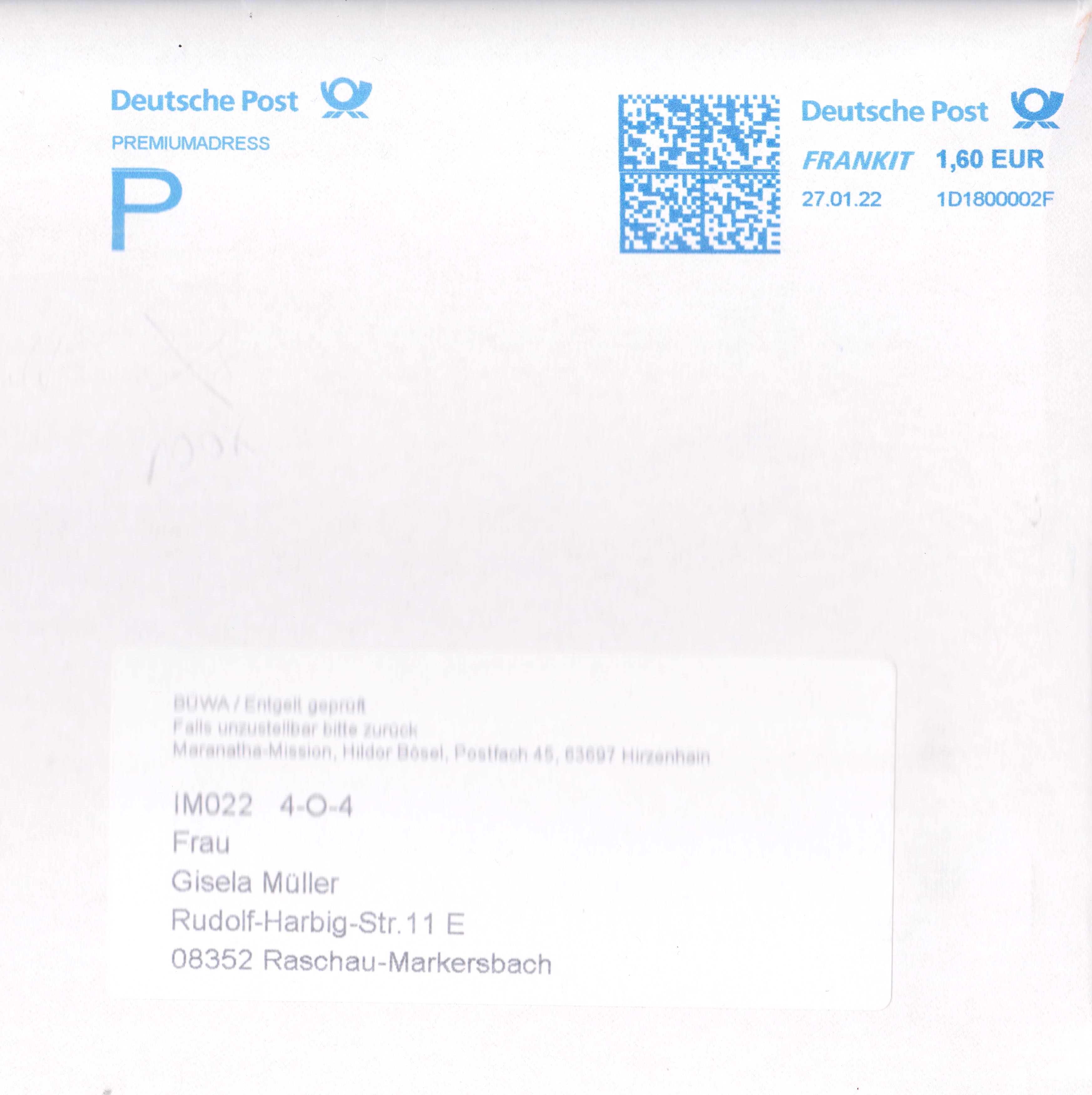 Der Empfänger muss keine zusätzliche Gebühr entrichten, um den Brief oder das Paket zu erhalten.