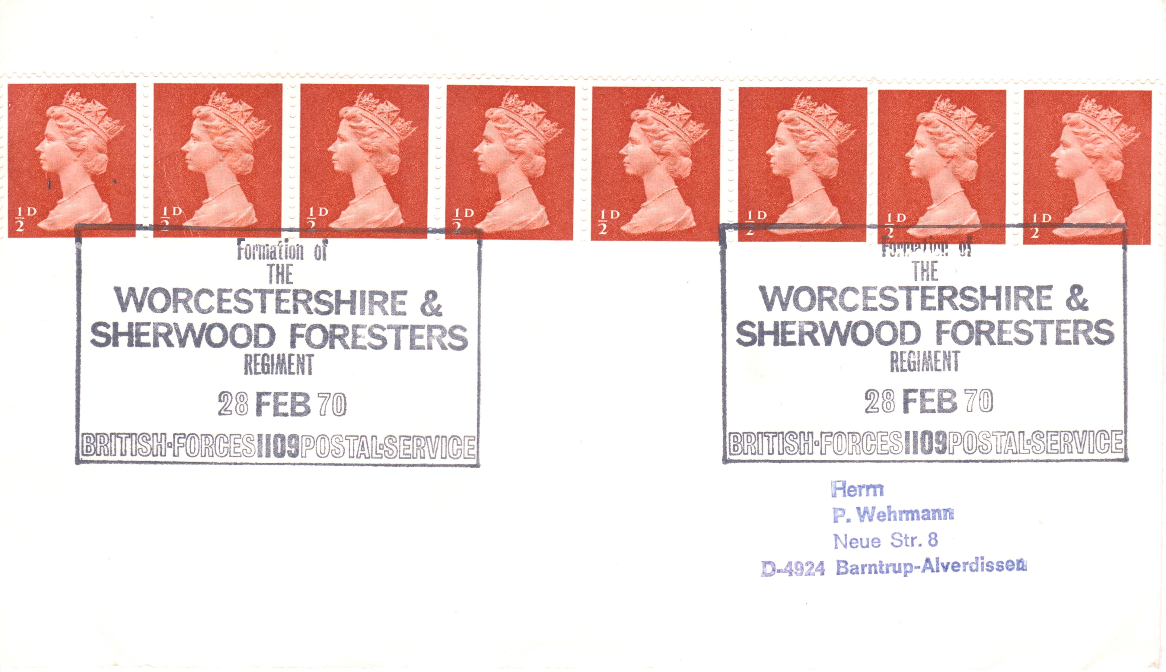 Dieser Standardbrief zeigt einen Maschinen-Bandstempel mit einem entsprechenden Werbeeinsatz: