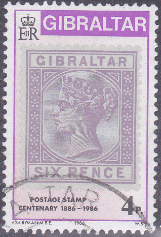 Aus Anlass "100 Jahre Briefmarken von Gibraltar" ist diese Marke aus Gibraltar (MiNr 505) mit der Marke Gibraltar MiNr. 13 erschienen.