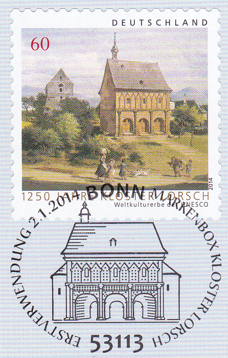 In der Serie "UNESCO-Welterbe" ist bei der Deutschen Post eine Marke (MiNr 3050) zum Jubiläum "1250 Jahre Kloster Lorsch" erschienen.