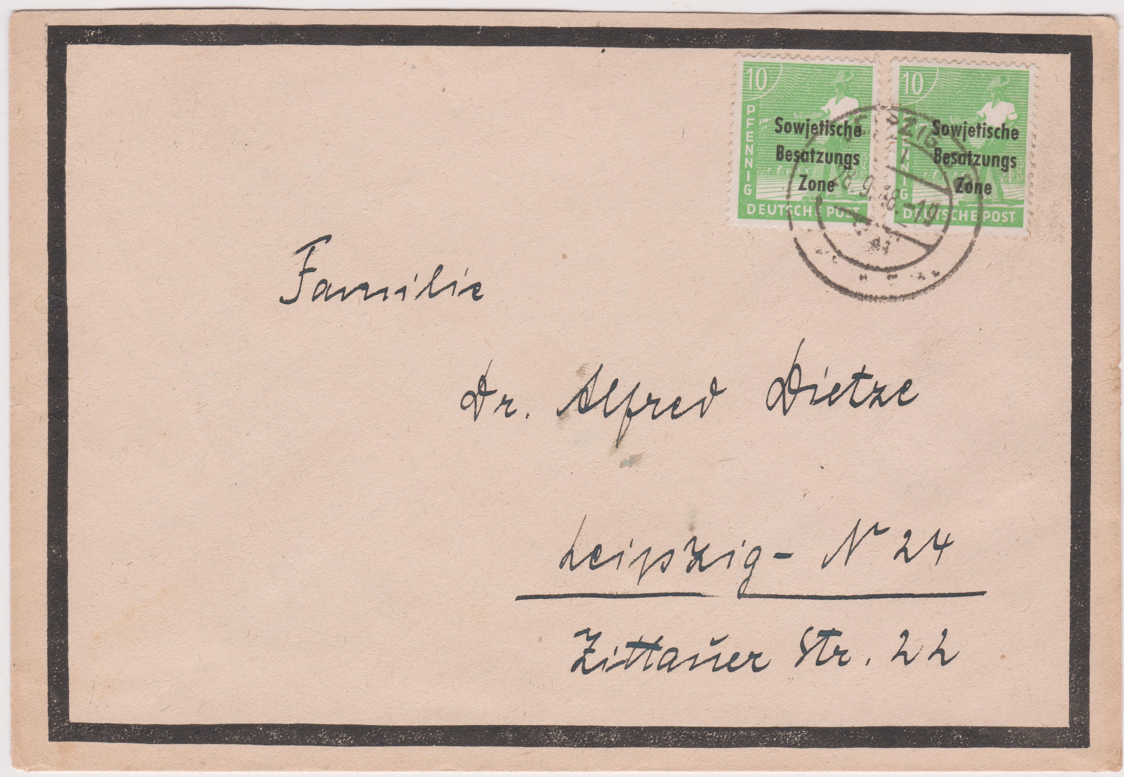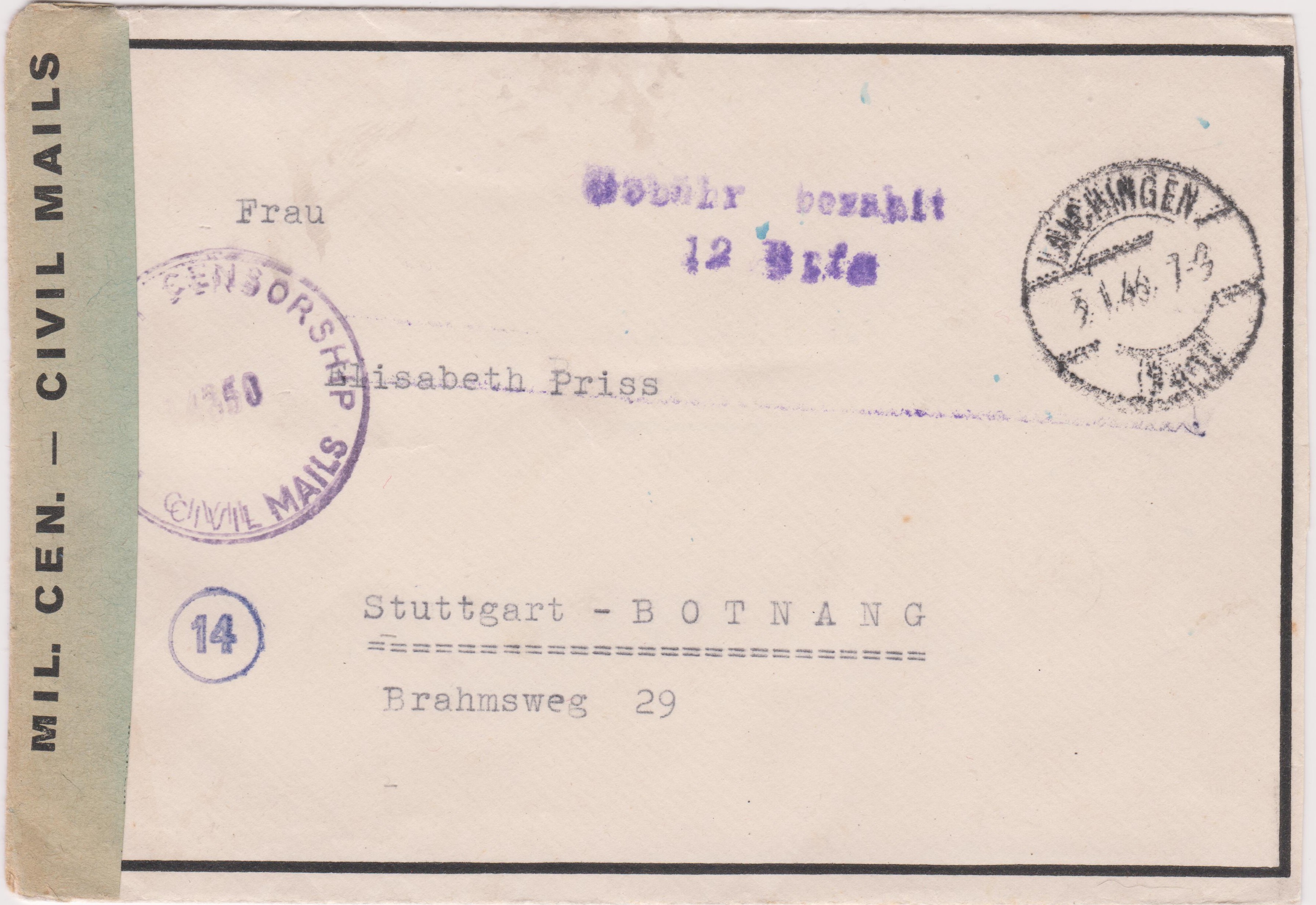 Trauerbrief nach Stuttgart, aufgegeben am 03.01.1946 in LAICHINGEN: