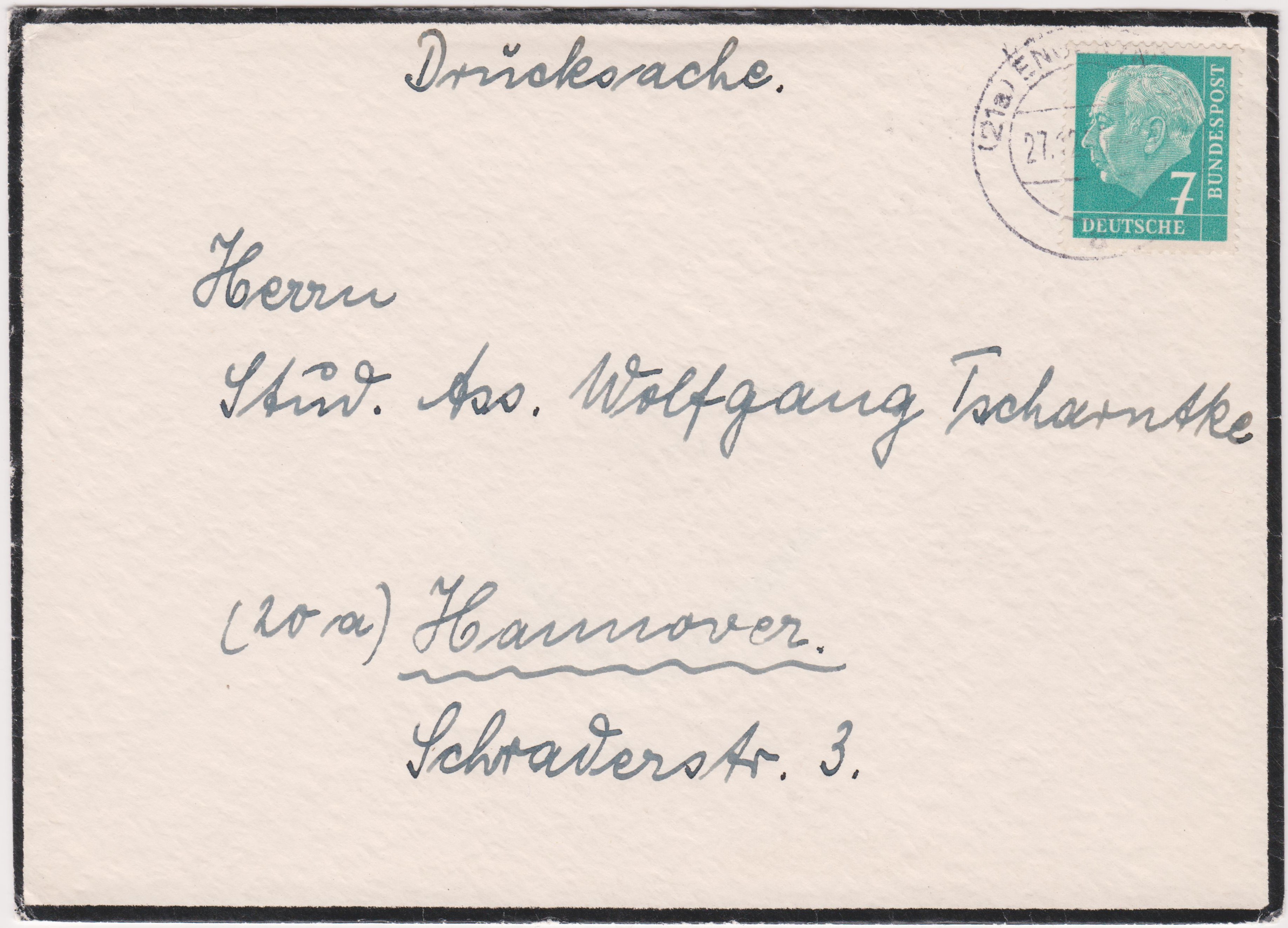 Trauerbrief nach Basel in der Schweiz, aufgegeben am 17.08.1960 in BERN: