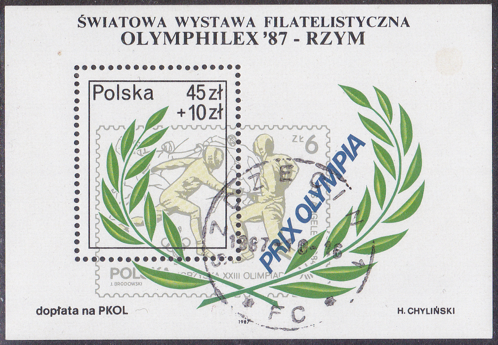 Auf diesem Block aus Polen (MiNr Block 104 mit Marke MiNr 3112) wird die Marke Polen MiNr. 2914 geteuigt.