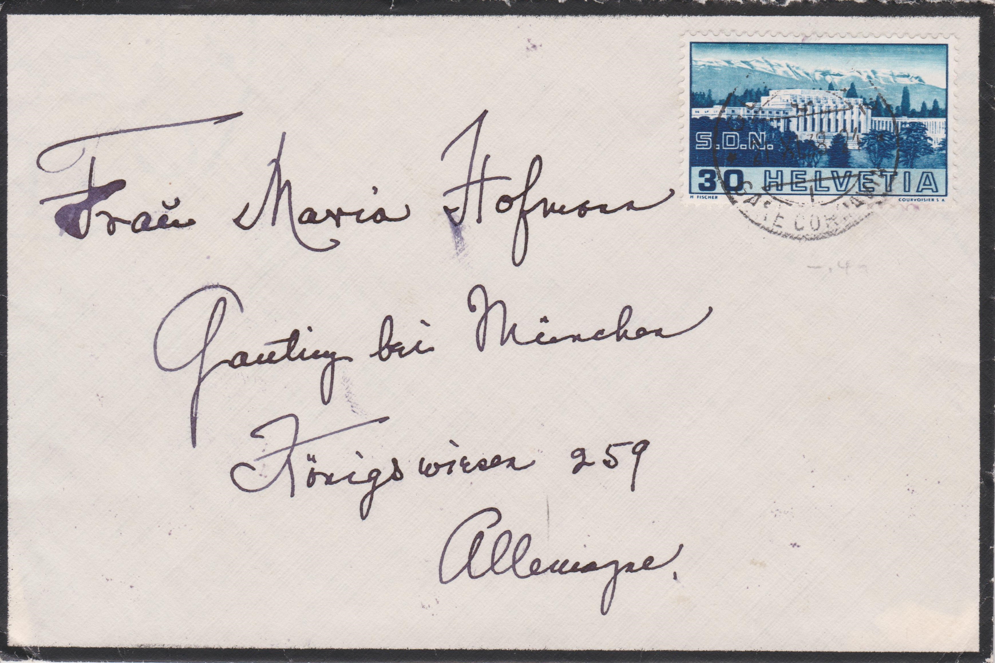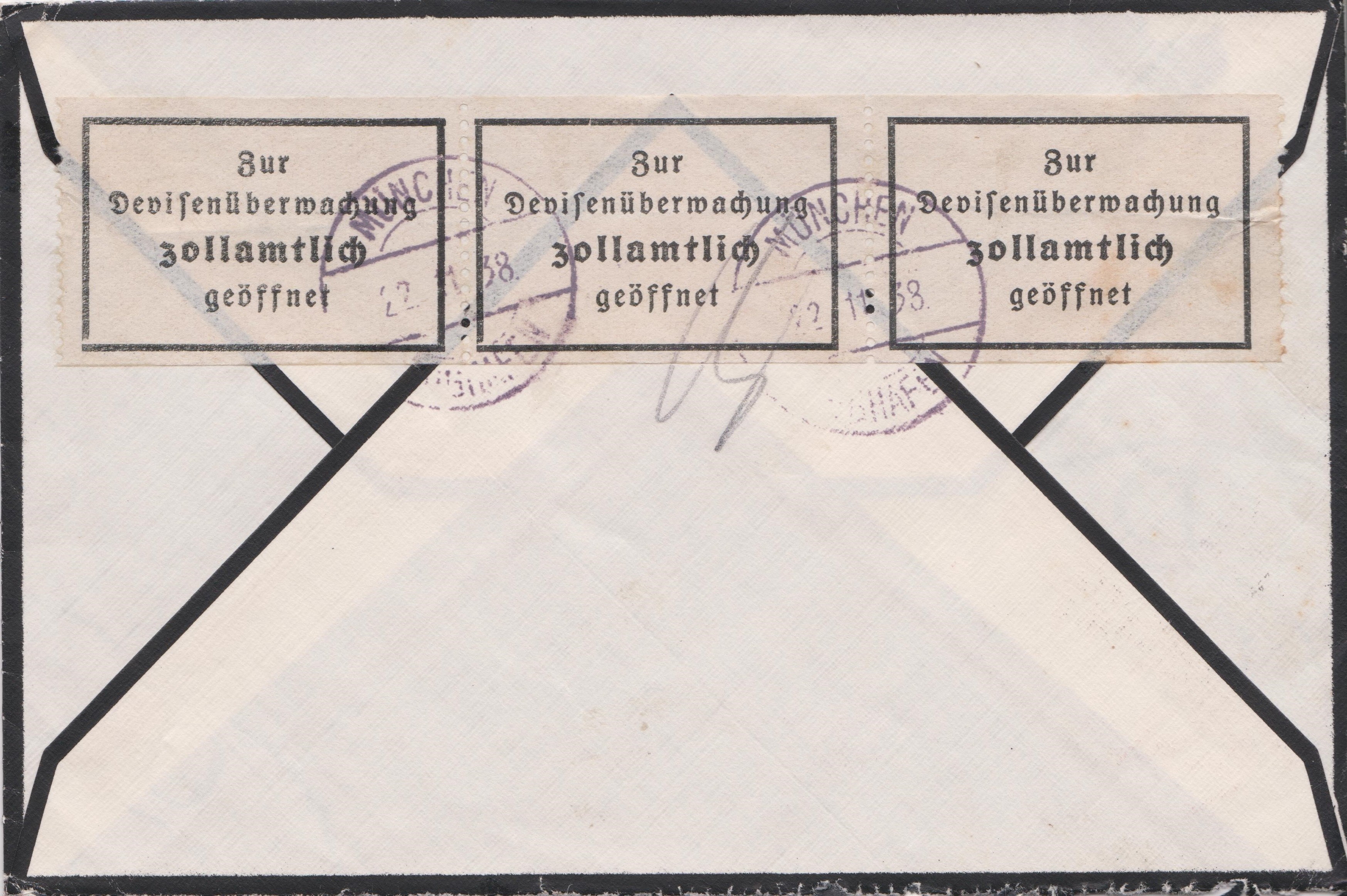 Dieser Trauerbrief aus der Schweiz wurde am 22.11.1938 in München rückseitig "Zur Devisenüberwachung zollamtlich geöffnet":