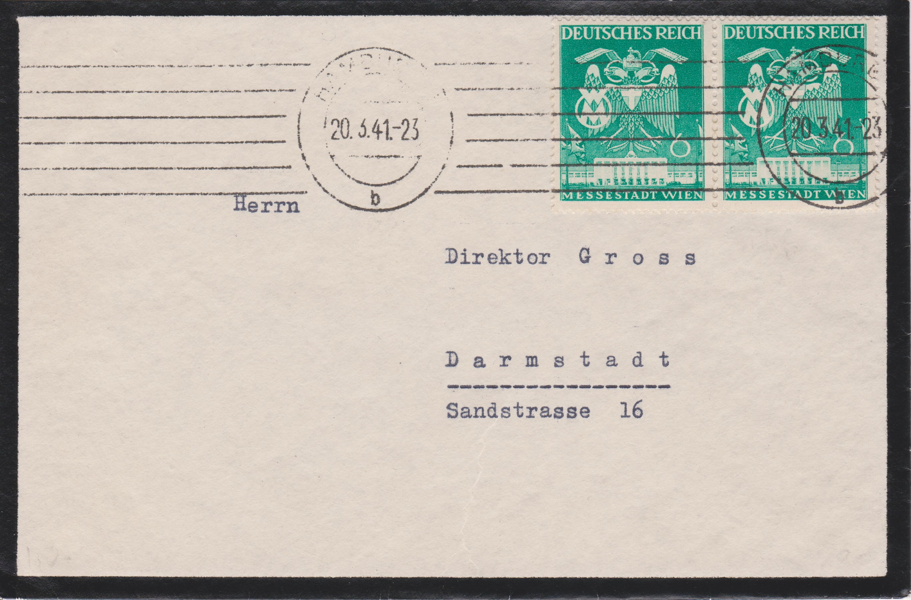 Trauerbrief im Fernverkehr, Portostufe 12 Pf, aufgegeben am 20.03.1941 um 23 Uhr in HAMBURG, gelaufen nach Darmstdt: