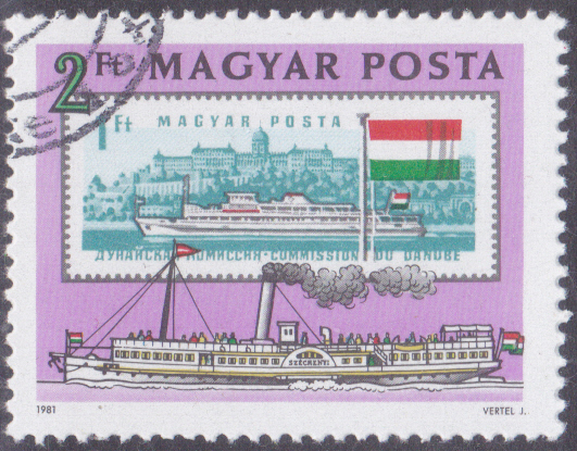 Aus dieser Serie kann ich noch eine weitere Marke (MiNr 3518 A) mit der Marke MiNr 2327 (mit dem Schubschiff "Miskolc") und dem Raddampfer "Zsófia" aus dem Jahre 1914 zeigen.