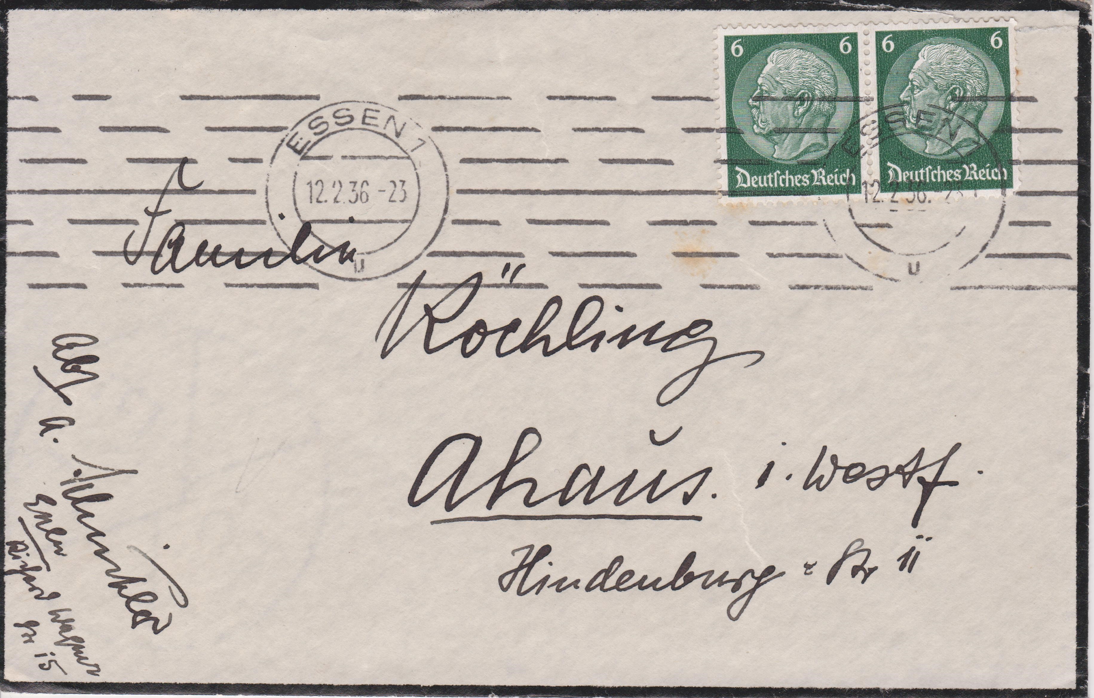 Die Entwertung erfolgte am 12.02.1936 per Maschinenstempel ESSEN 1 u.