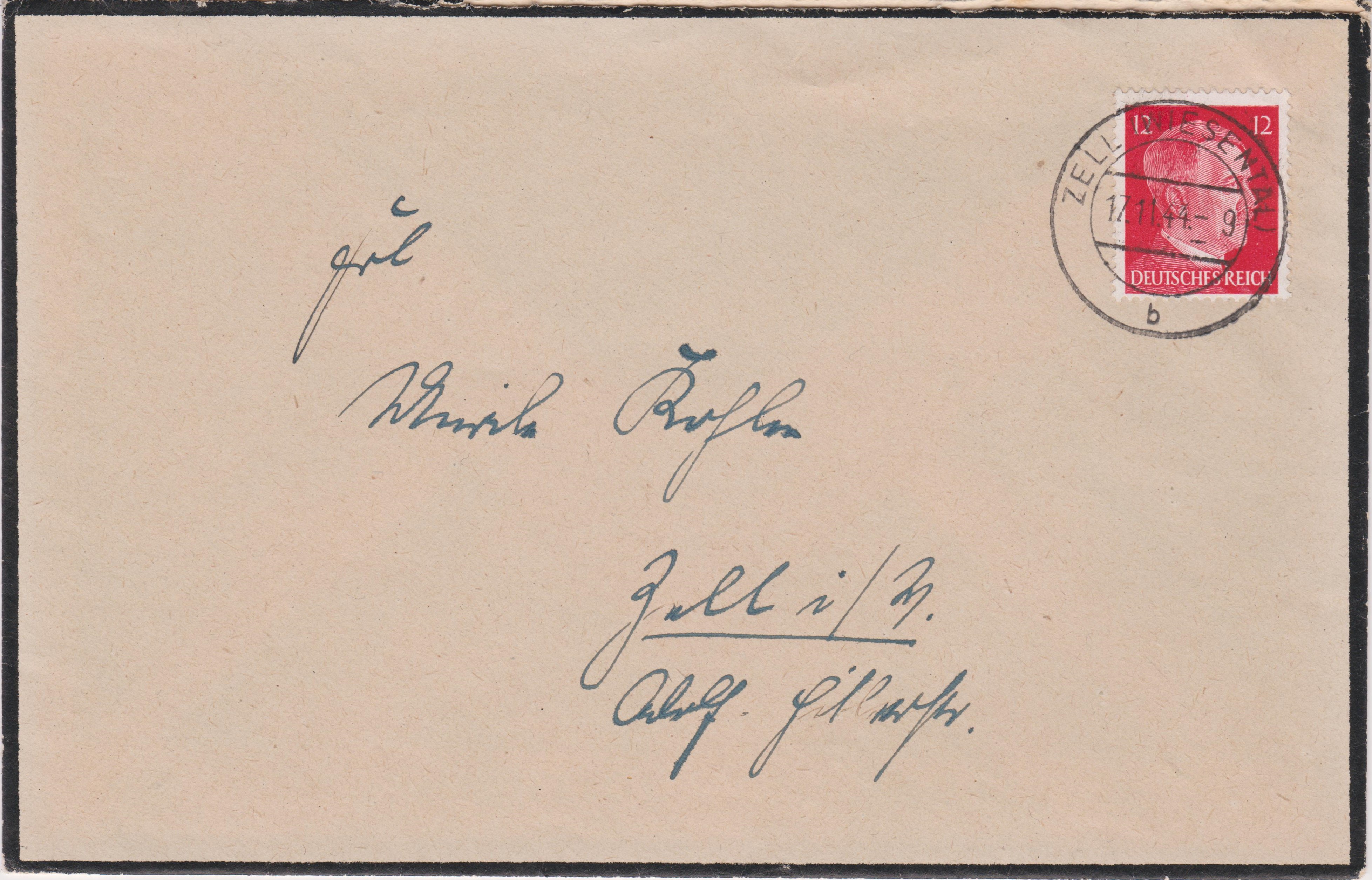 Die Entwertung erfolgte am 17.11.1944 per Tagesstempel ZELL (WIESENTAL).