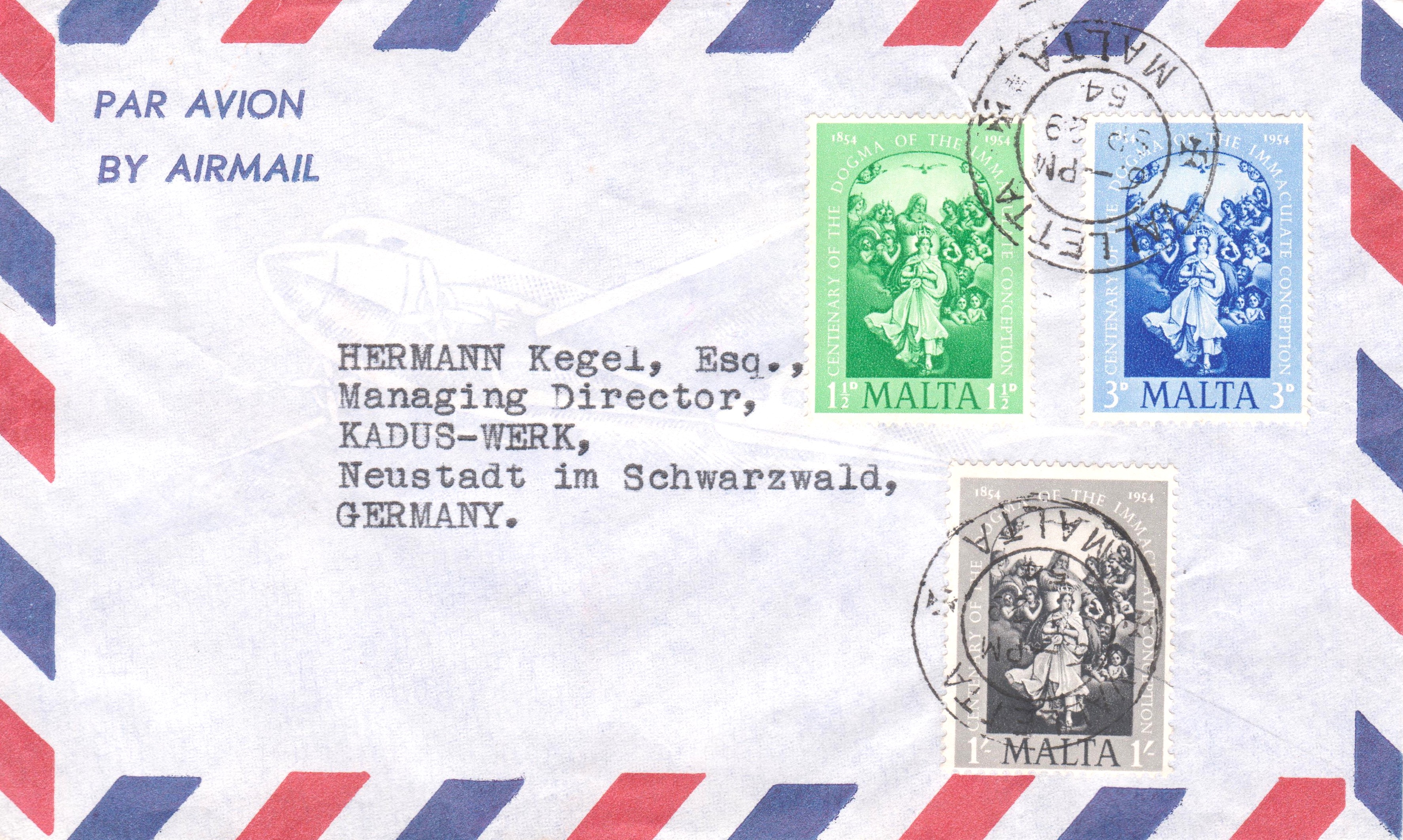 Malta MiNr. 234-236 erschienen am 08.09.1954 aus Anlass "100 Jahre Dogma der Unbefleckten Empfängnis" und zeigt das Gemälde "Die unbefleckte Empfängnis" von Pietru Pawl Carúana (1794-1852).