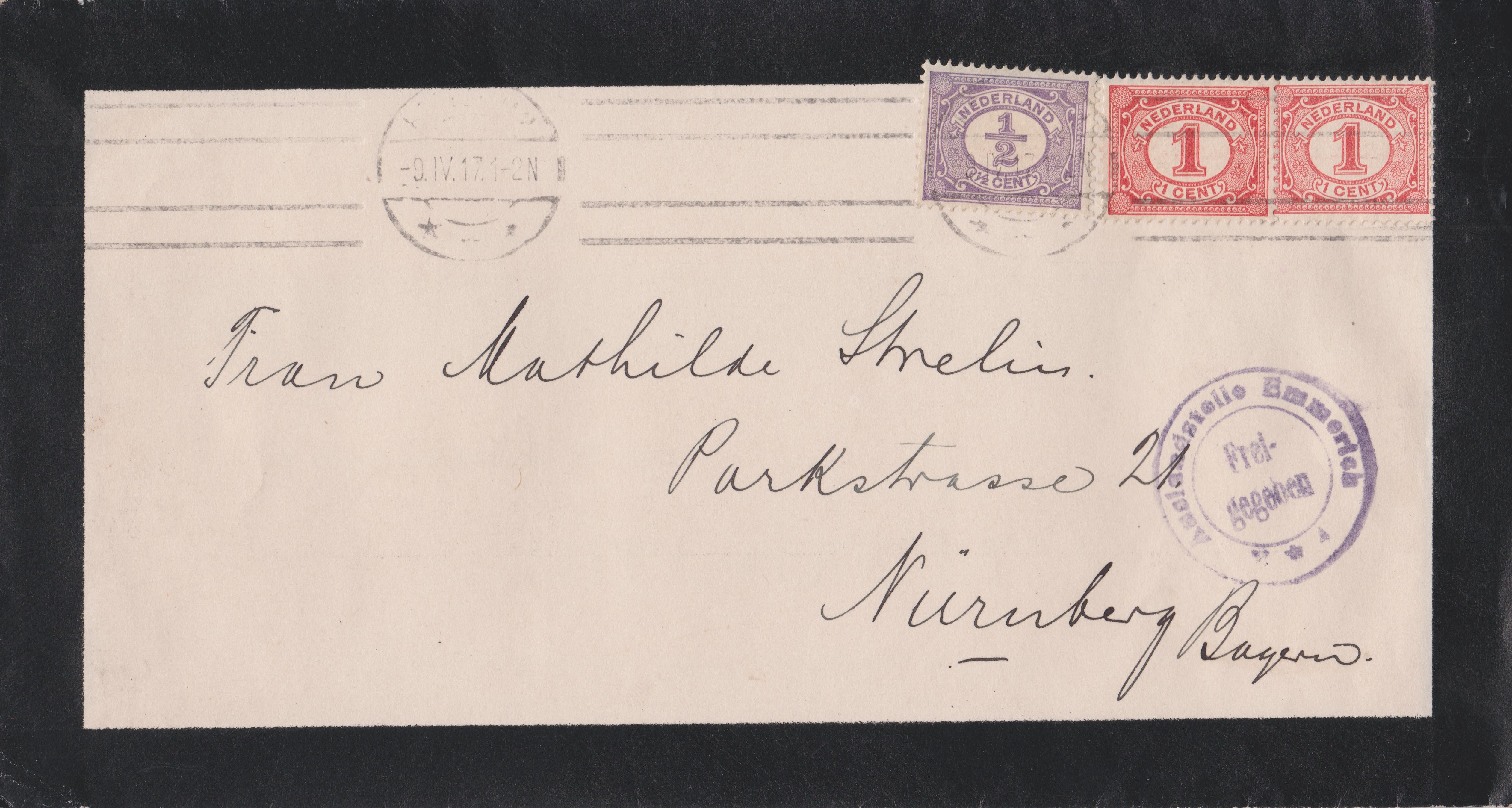 Trauerbrief vom 09.04.1917 aus Rotterdam, adressiert nach "Nürnberg Bayern":