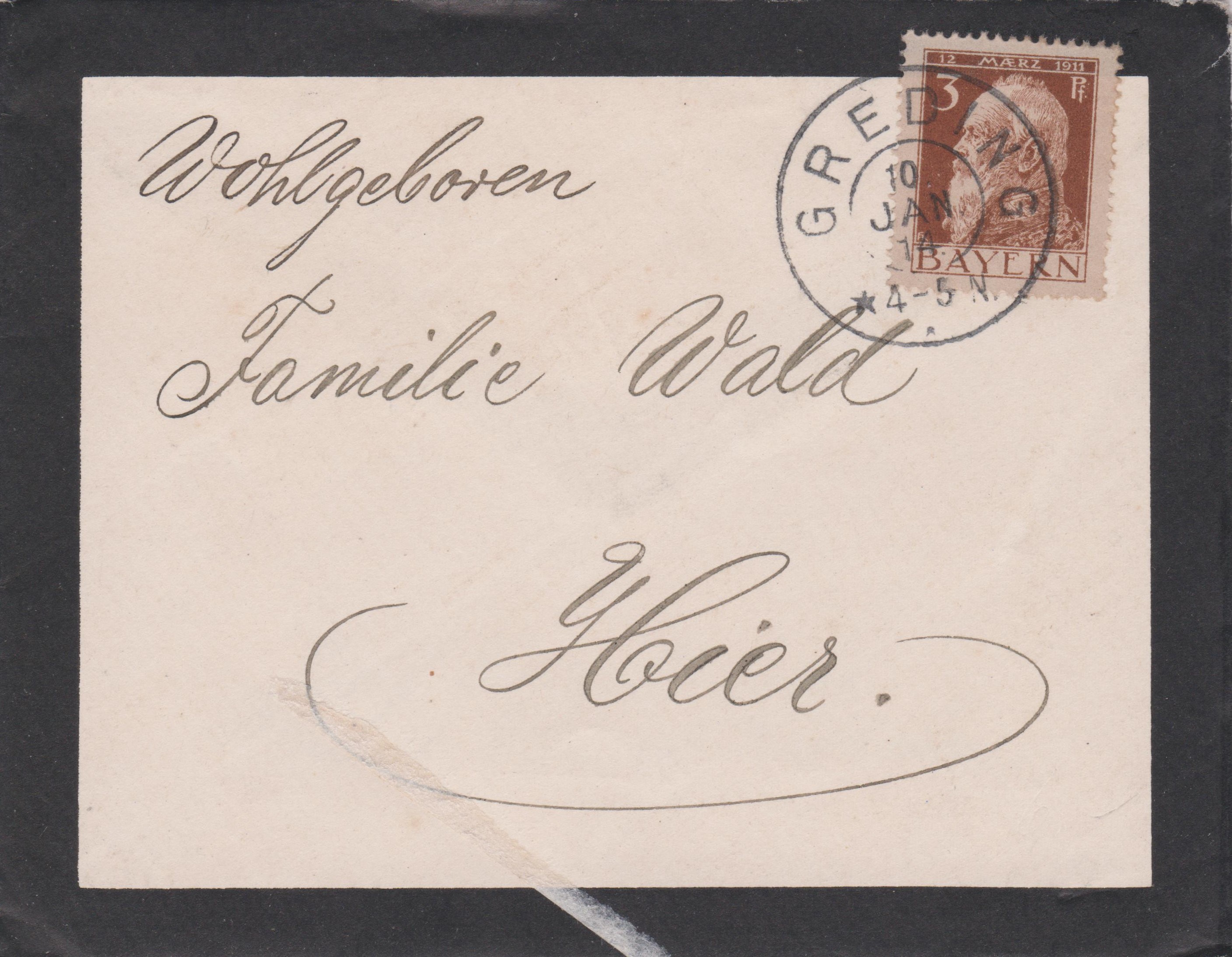 Trauerbriefe als Drucksache im Ortsverkehr von GREDING frankiert per Einzelfrankatur Bayern MiNr. 76:
