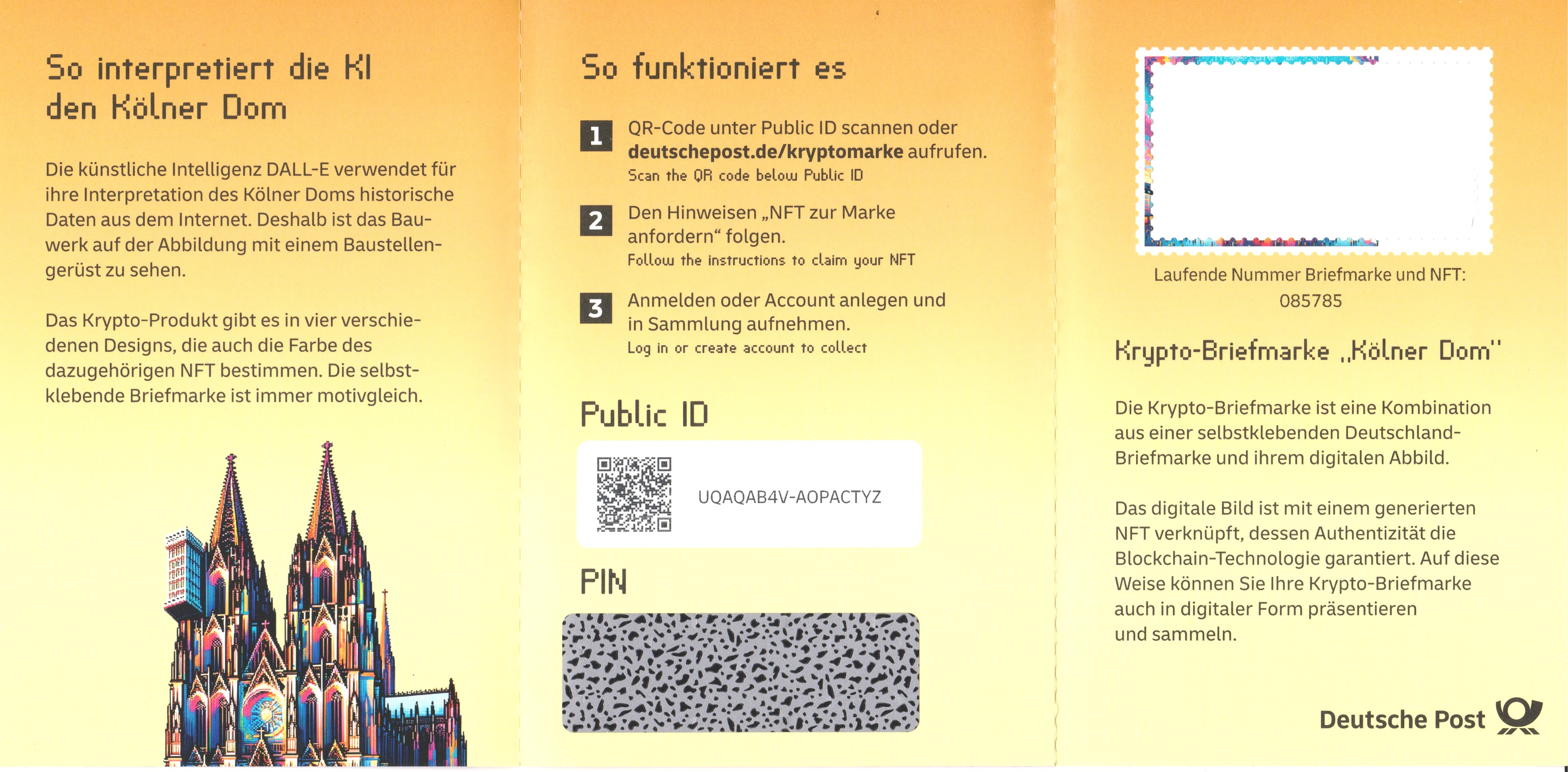 Diese Krypto-Briefmarke wurde nur als Einzelmarke in Markenheftchen, MiNr. MH 128, hergestellt und verkauft.