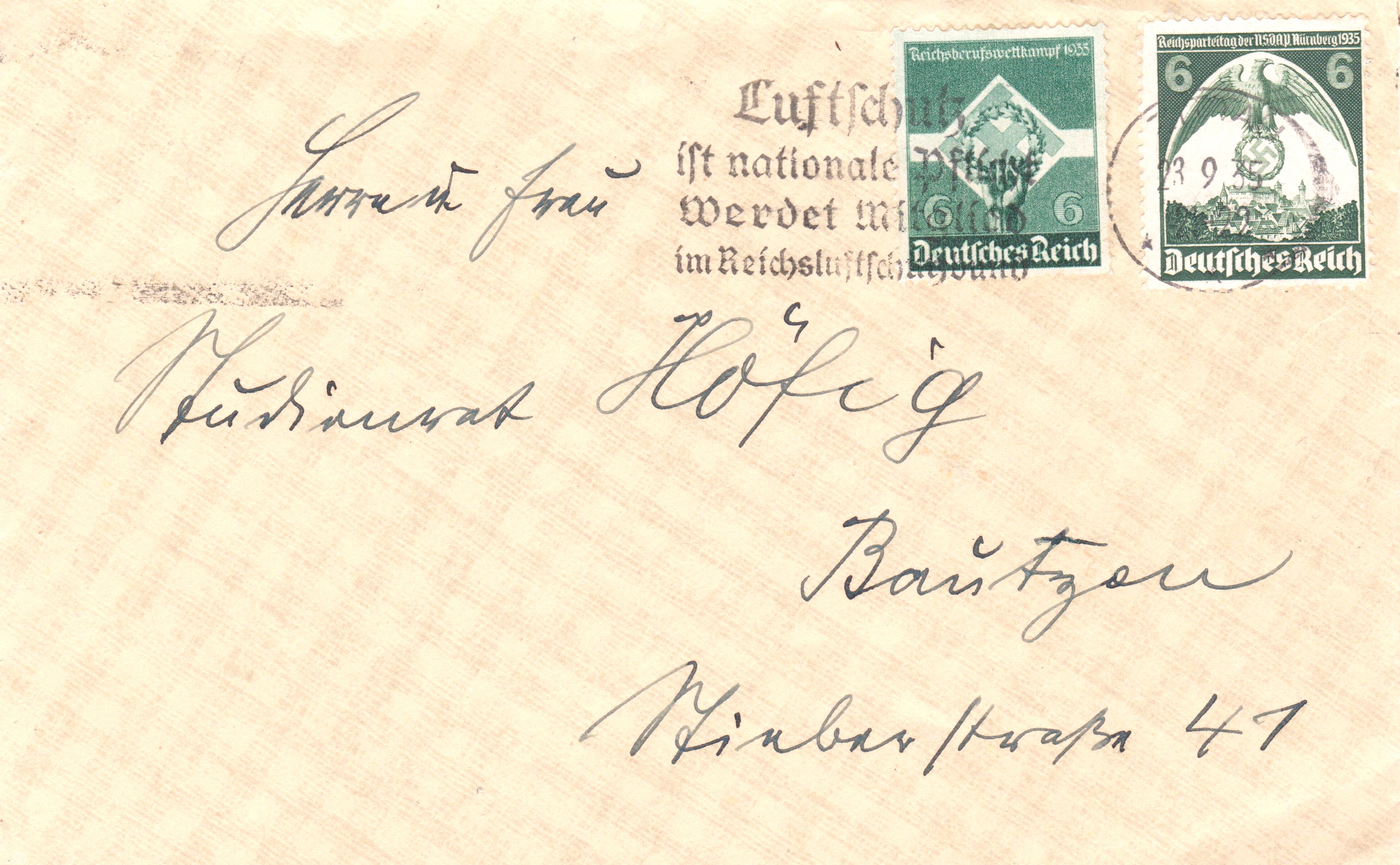 Maschinenstempel aus CHEMNITZ mit Werbeeinsatz "Luftschutz / ist nationale Pflicht / Werdet Mitglied / im Reichsluftschutzbund".