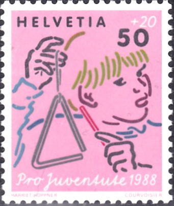 Schweiz MiNr. 1382 zeigt ein Kind beim Triangelspiel: