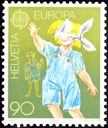 Schweiz MiNr. 1392 zeigt zwei Kinder bei dem Spiel "Blindekuh":