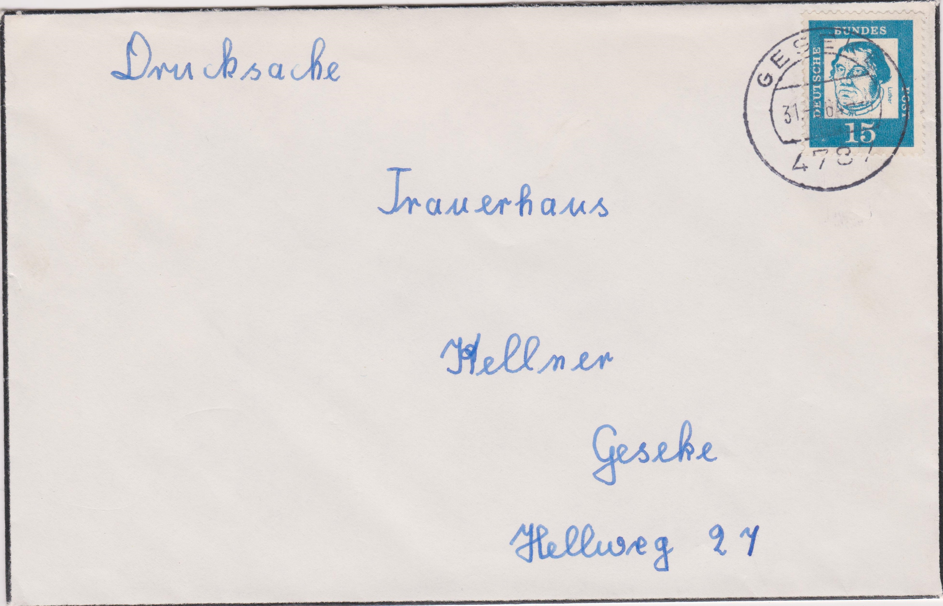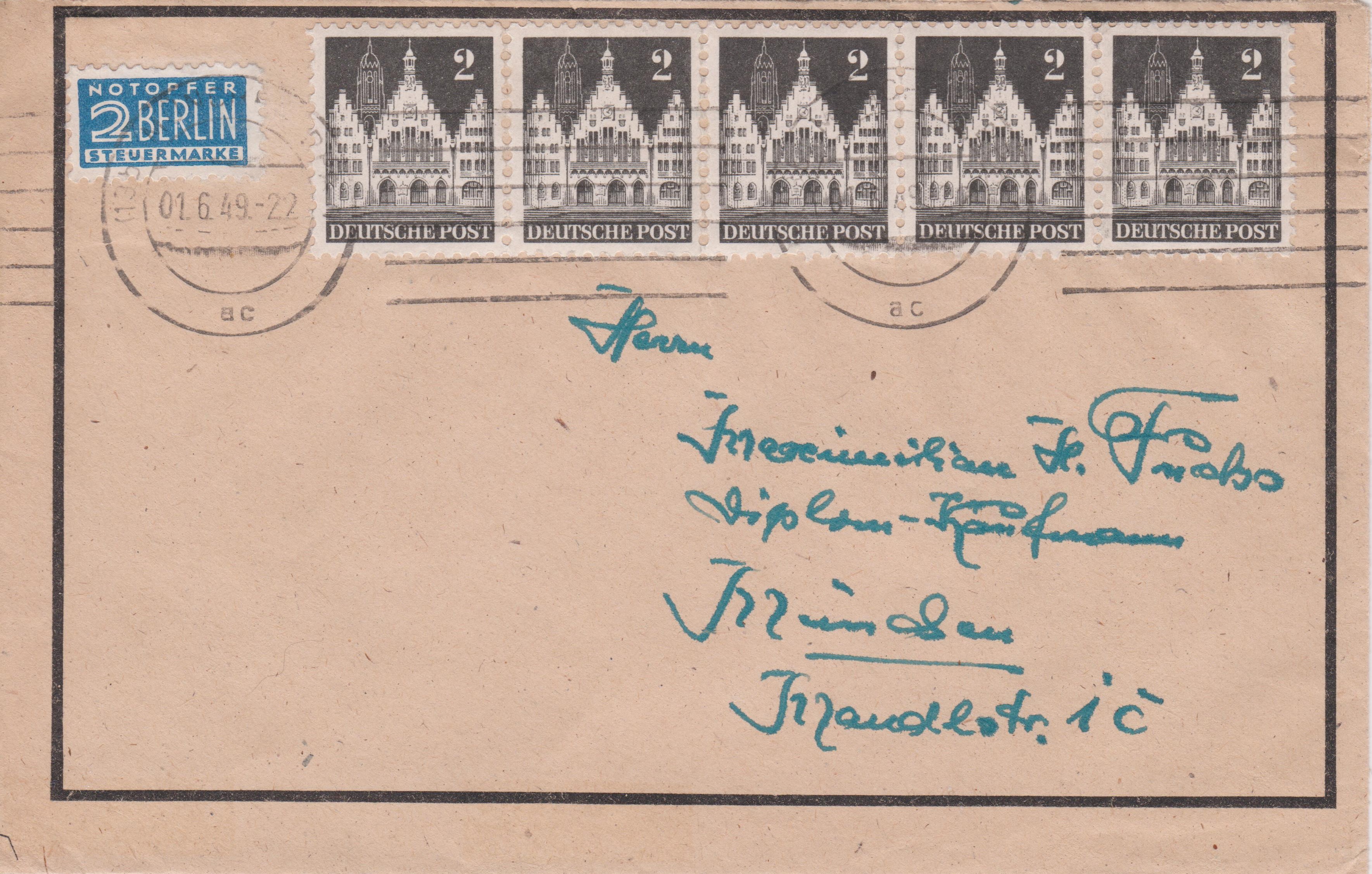 Daher wurde am 27.12.1946 die als ungültig erkannte Frankatur dieses Trauerbriefes mit Blaustift umrahmt und der Tagesstempel PLETTENBERG 1 wurde links daneben abgeschlagen. Am Bestimmungsort Altena wurde das Eineinhalbfache des fehlenden Portos von 6 Pf = "9" Pf per Blaustift vermerkt und als "Nachgebühr" erhoben.