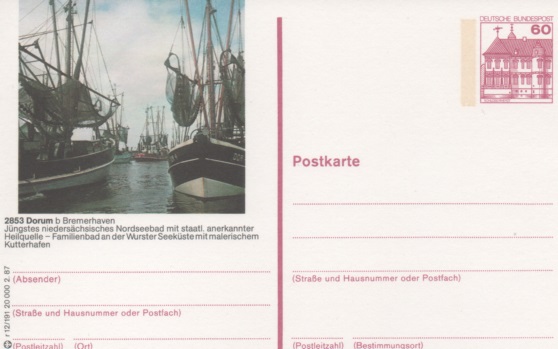 Ich beginne mit einer Bildpostkarte der Deutschen Bundespost von 1960, die den Überseehafen in Bremen zeigt.