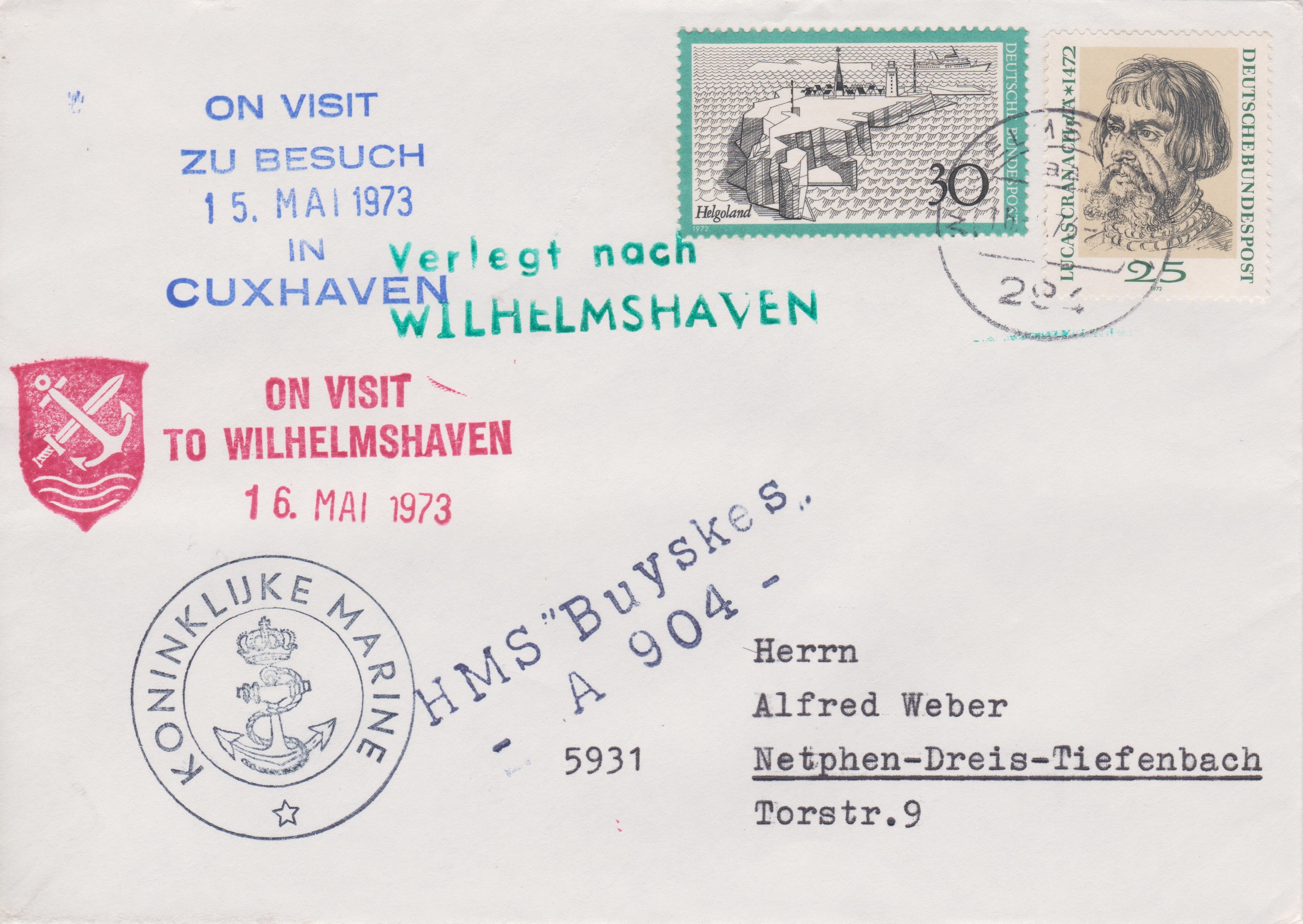 Am 16.05.1973 war die HMS BUYSKES zu Besuch in WILHELMSHAVEN, was dieser Beleg dokumentiert: