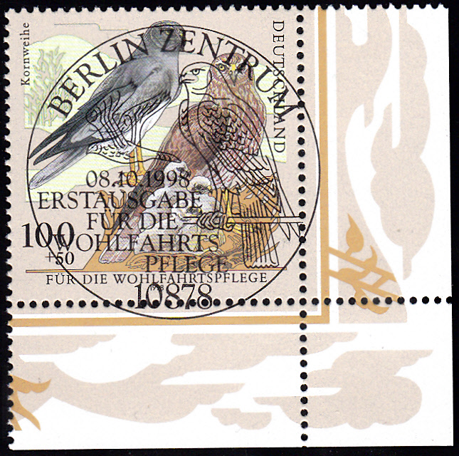 Eine der Wohlfahrtsmarken 1998 der Deutsche Post (MiNr 2015) zeigt ein Männchen und ein Weibchen mit Nest und drei Küken.