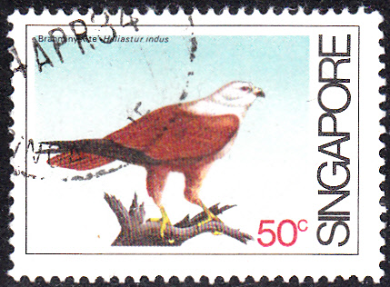 Ich kann hier eine Marke aus Singapur (MiNr 442) mit einem Brahminenweih (Haliastur indus) zeigen: