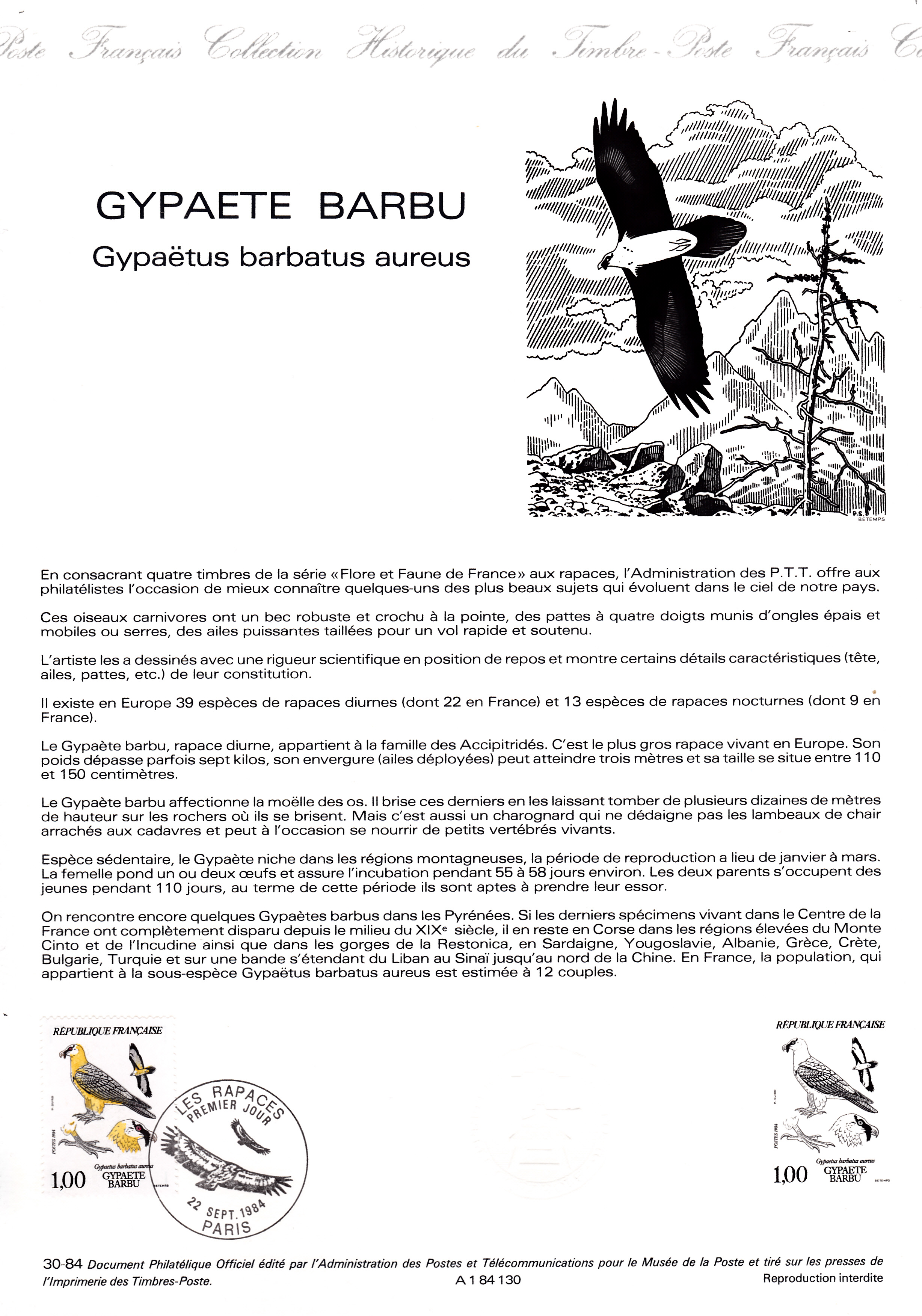 Zur im ersten Beitrag hier gezeigten Marke aus Frankreich (MiNr 2463) kann ich heute hier noch ein "Philatelistisches Dokument" (Document Philatelie Officiel) zeigen, das von der Briefmarkendruckerei in Boulazac (nähe Perigeux) hergestellt wurde. Im oberen Teil werden Informationen zum abgebildeten Vogel vermittelt und links unten ist eine Marke mit dem Ersttagsonderstempel gestempelt und rechts unten ein einfarbiger Druck der gleichen Marke zu finden.