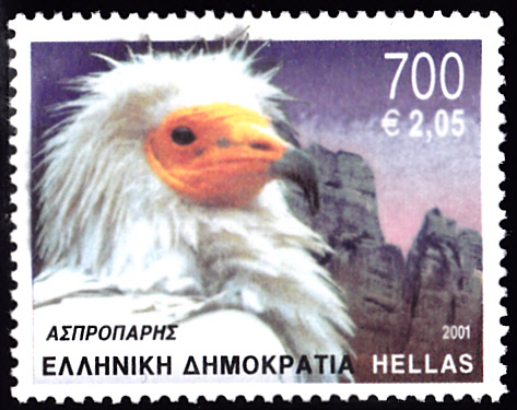 Dieser Marke aus Albanien (MiNr 1129) aus einer Serie "Greifvögel" zeigt eine Schmutzgeier (Neophron percnopterus).