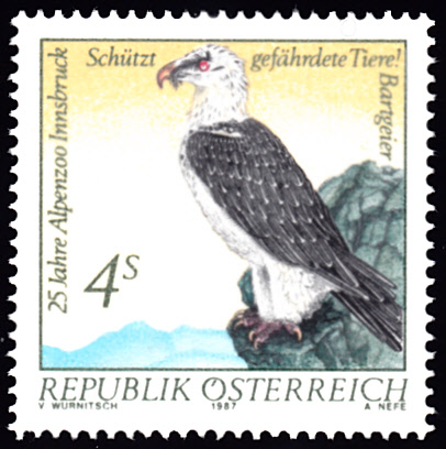 Auch in Österreich erschien eine Marke (MiNr 1901) mit einem Bartgeier (Gypaetus barbatus).