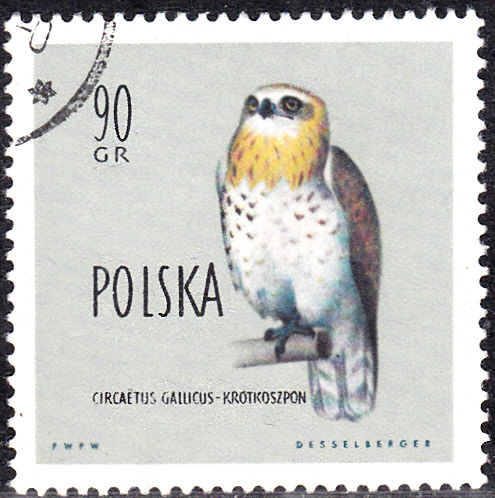 In einer polnischen Serie "Geschützte Vögel Polens" ist auch eine Marke (MiNr 1204) mit einem Schlangenadler (Circaetus gallicus) erschienen.