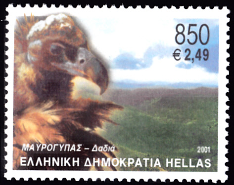 In einer Serie ist in Griechenland diese Marke (MiNr 2078) mit einem Mönchsgeier (Aegypius monachus) erschienen.